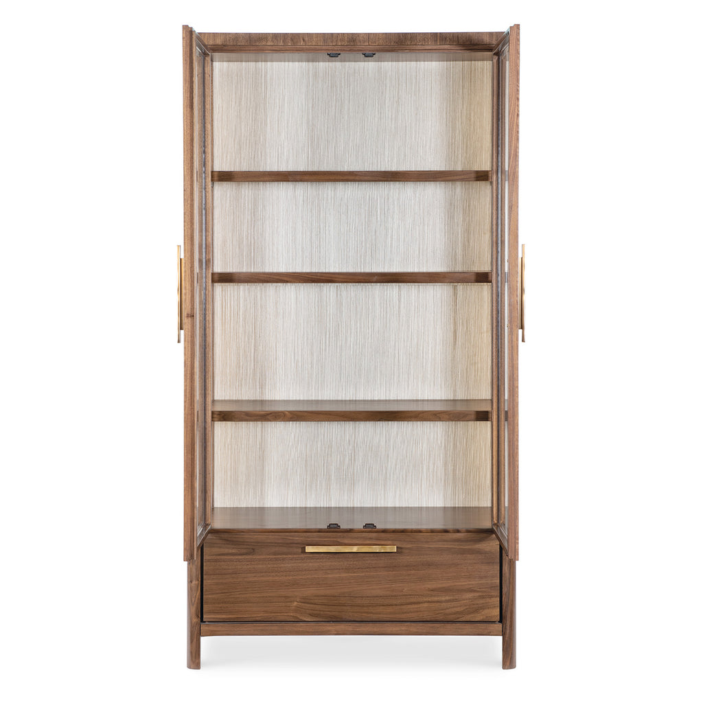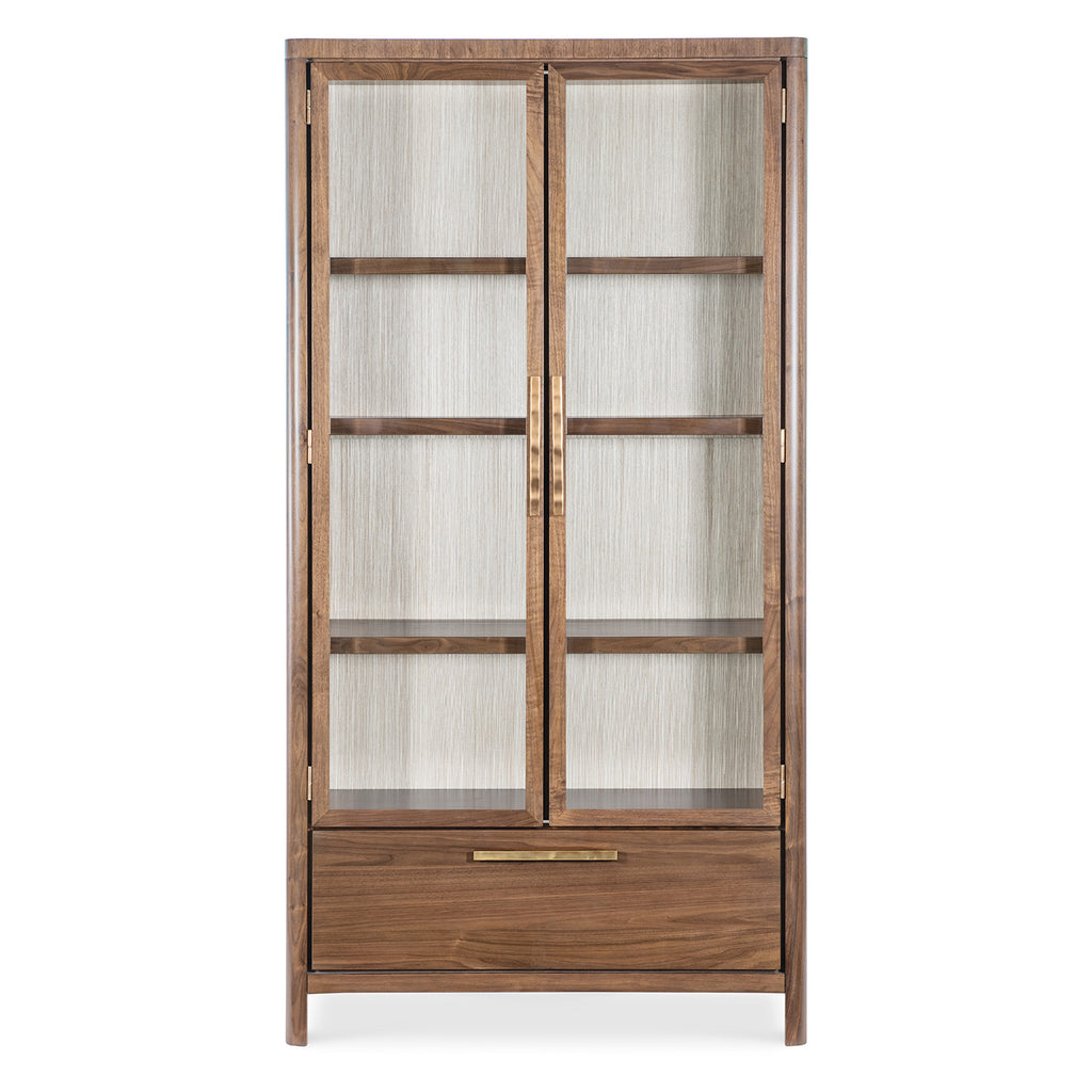 Showcase your treasures with the Eleana Display Cabinet, featuring walnut veneers, beveled glass doors, and a grass-cloth back panel in warm beige tones. Equipped with three adjustable wood shelves, touch-activated LED lighting, and a self-closing drawer, this cabinet blends form and function. Its museum-style lighting highlights your collections, making it a centerpiece for any dining room. Marrying sculptural refinement with an effortless sense of luxury, the Eleana collection is a masterclass in contemporary elegance. The series, imbued with an effortless sense of sophistication, where sculptural silhouettes meet richly textured materials to create pieces that feel at once timeless and of the moment. Versatile in both scale and sensibility, Eleana's thoughtful proportions and nuanced finishes bring a sense of depth and harmony, lending itself seamlessly to a range of interiors, from intimate city dwellings to expansive retreats. Infused with a relaxed yet polished sensibility, Eleana embodies the essence of modern living; stylish, inviting, and intuitively crafted for the way we live today.