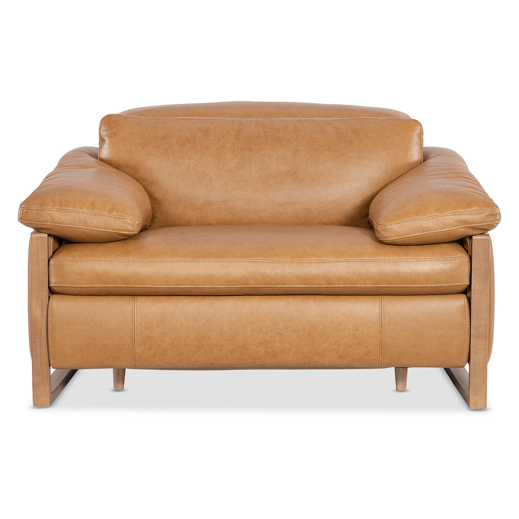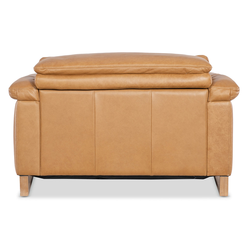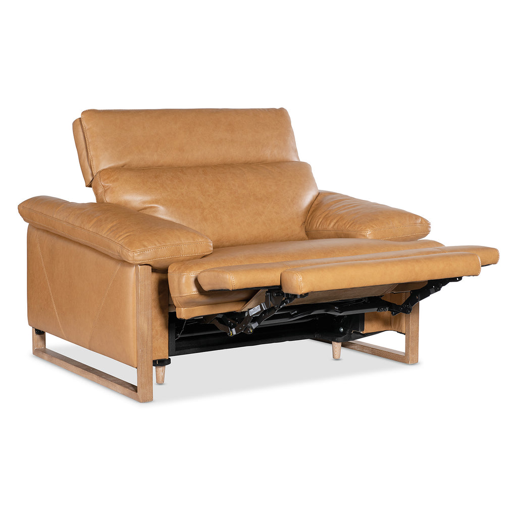 The Jericho Power Recliner in Dallas Toffee delivers oversized relaxation with elevated design. Padded pillow arms, a sleigh-style wood frame, and hidden controls make this a go-to for both comfort and aesthetic. Ideal for transitional or classic home theater setups. Hooker Furniture Upholstery is a designer-inspired collection of upscale leather seating that includes versatile reclining chairs, modern-day reclining sofas, eclectic club and artisan accent chairs, as well as a selection of executive desk chairs for the home. Designed and curated to appeal to a variety of style tastes, each piece from Hooker Furniture Upholstery is meticulously crafted in a unique selection of textures and hues.