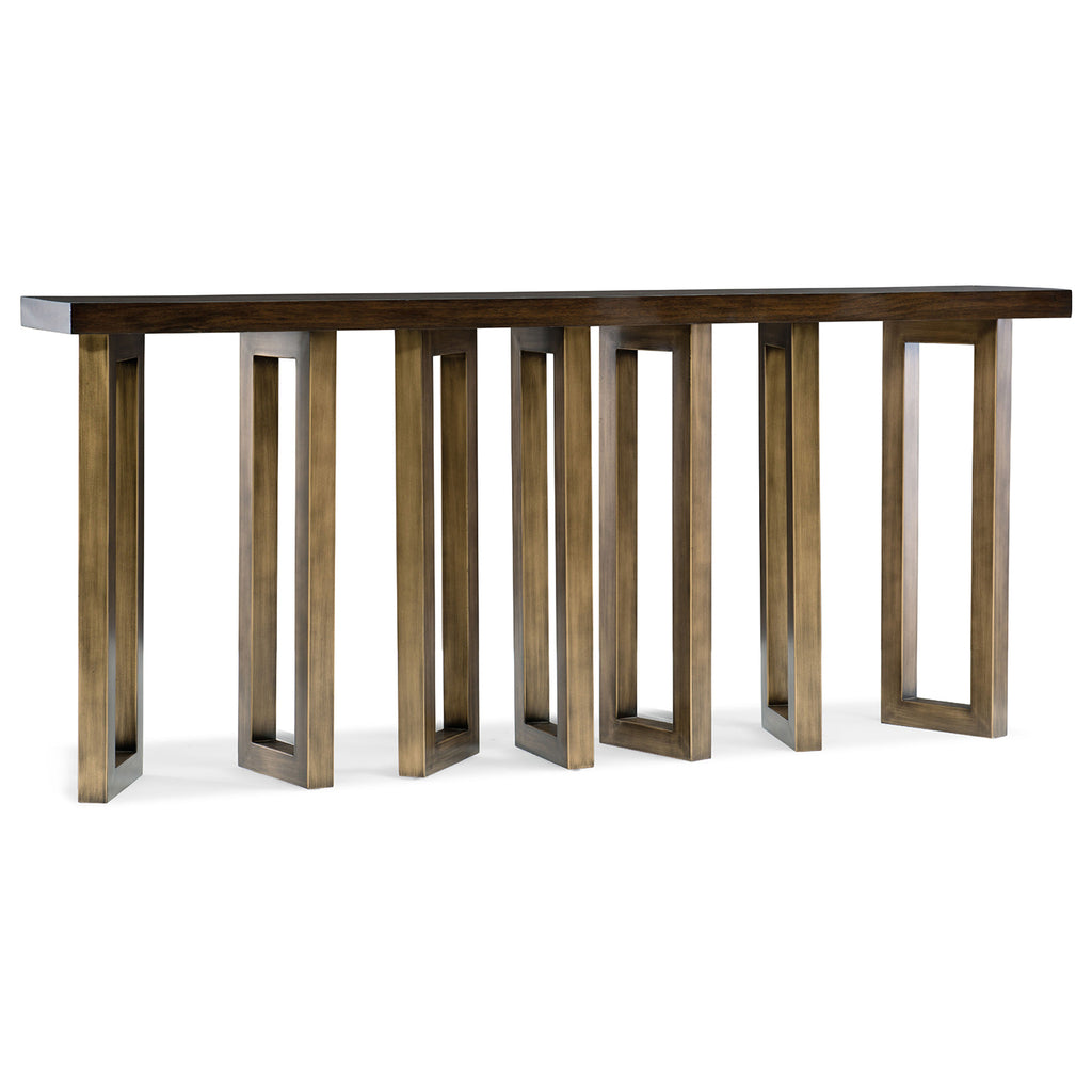 An abstract art lover’s dream, the Connelly Hall Console has an organic beauty, combining a Cathedral Black Walnut Veneer top and a random-pattern metal base in a soft, earthy gold finish.