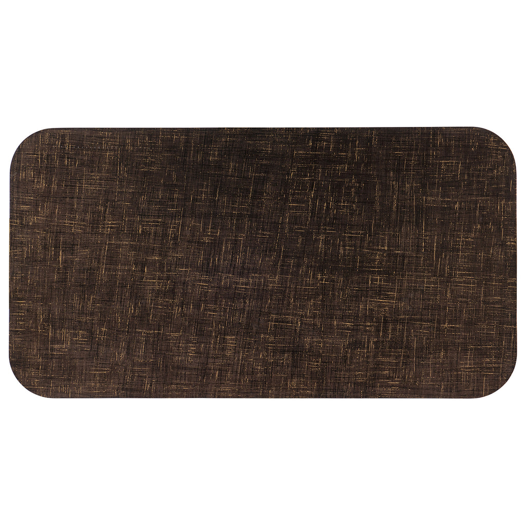 With a unique silhouette and X-motif base, the Edmun Cocktail Table is a striking addition to any living space. Featuring a rectangle shape with round edges, the table is crafted of Maple Veneers in a dark wood finish with gold accents.