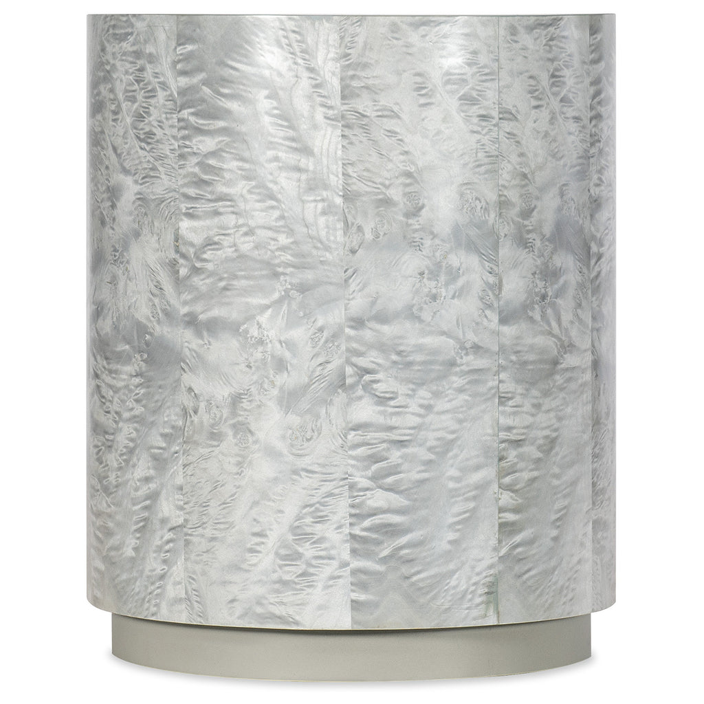Organic forms and textures get a cosmopolitan spin with the Emile Accent Table. Earthy Hickory Veneers on the plinth base and Burl Veneers on the body of the table are covered in unexpected charcoal and silver finishes. 20 inches round for versatility in many spaces.