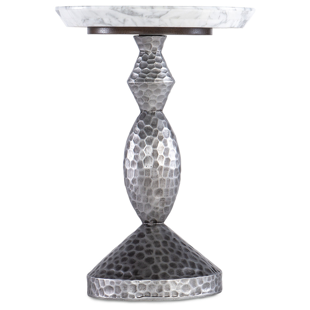Add a punctuation mark of style and taste with the Gerrin Side Table, combining a Silver distressed base with a Carrara Marble white and gray top in a compact footprint.