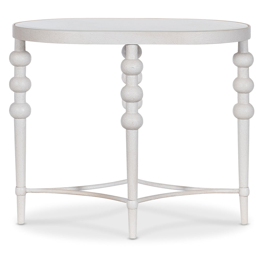 With its white textured finish and beveled glass inset, this oval end table brings light and elegance to your décor. Ideal for minimalist or coastal-inspired spaces. Come closer to Melange, and you will discover something unexpected, something far more than an accent furniture collection offering a multitude of finishes. An eclectic blending of colors, textures and materials in a vibrant collection of one-of-a-kind artistic pieces, Melange is meant to inspire you and fuel an experience of self-discovery. Melange can provide that spark needed to begin the transformation of a room and a renaissance in your life. Each piece of Melange has its own story. The designs are versatile and timeless, easily transcending from one life stage to the next, from home to home and generation to generation.