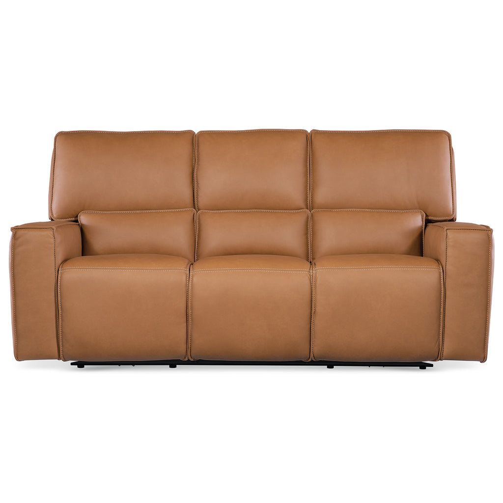 In a relaxed yet refined silhouette, the Miles Zero Gravity Power Recline Sofa with Power Headrest features a plush bustle-style back, wide track arm and flange welt trim. A USB port adds convenient function. Covered in the luxurious semi-aniline top-grain leather, the 3-over-3 sofa is 84 inches wide.