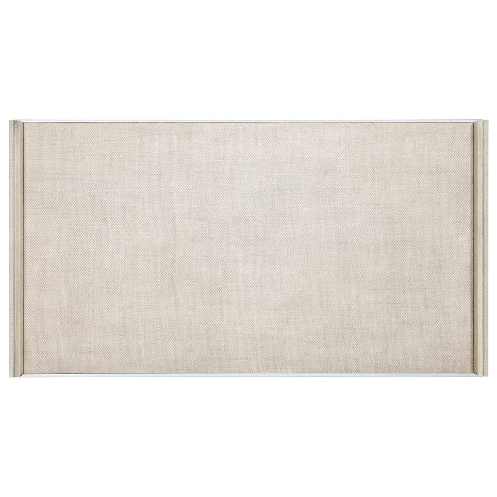 Architectural and timeless with a luxe mixture of materials, the striking Modern Mood Rectangle Cocktail Table has a raffia-wrapped shelf beneath a one-inch-thick tempered glass top. With rounded sides, the table is crafted of Oak Veneers with tactile wire-brush detailing, offering soft sophistication.