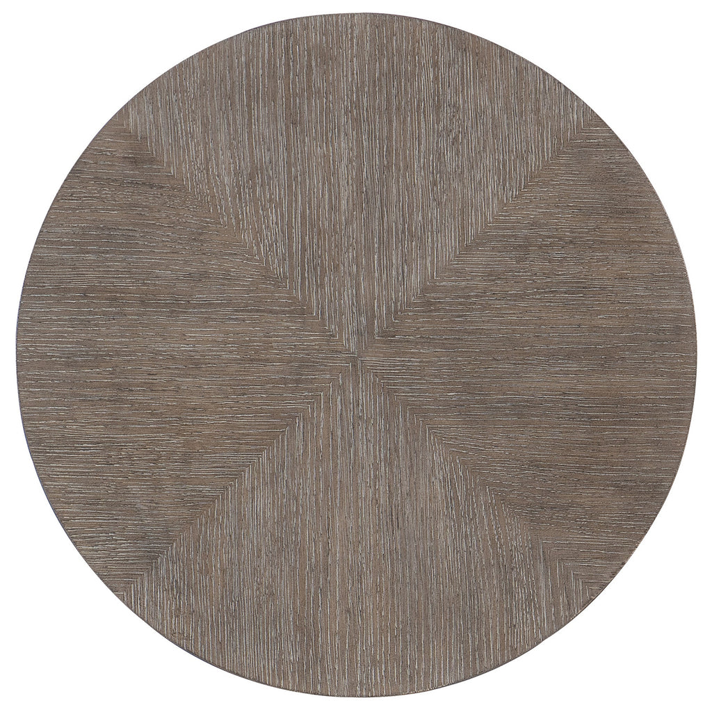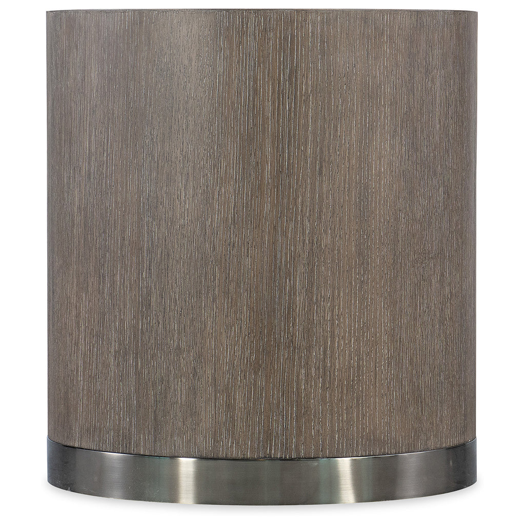 Sleek and stylish with a simple and timeless modern profile, the Modern Mood Round End Table combines Quartered Oak Veneers with a metal-wrapped band around the base in a warm pewter finish. The wood table is finished in Diamond or Mink and pewter hues for a soft sophistication.