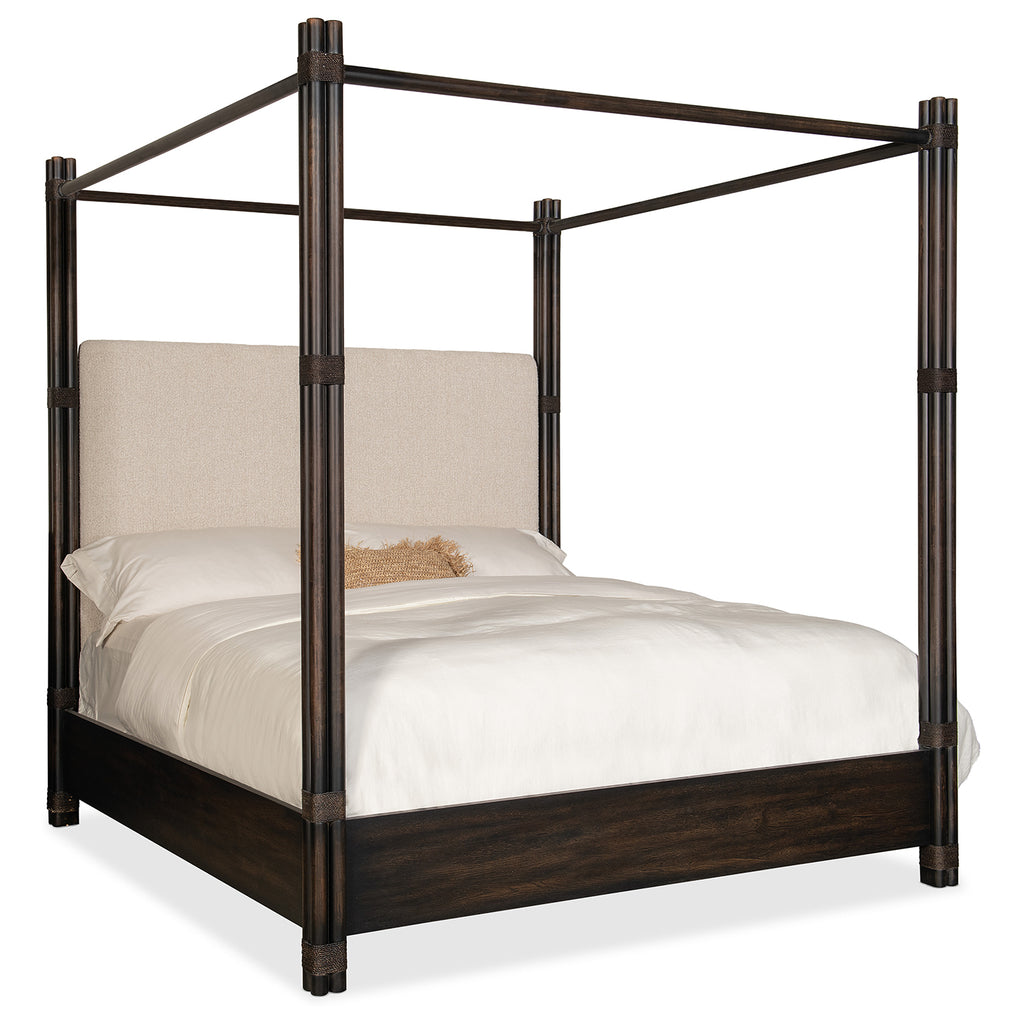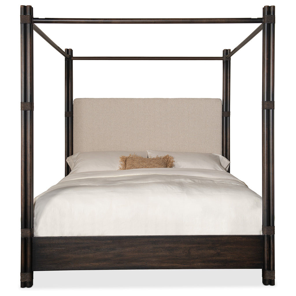 Hooker Furniture Retreat Pole Rattan Upholstered Poster Bed w/ Canopy