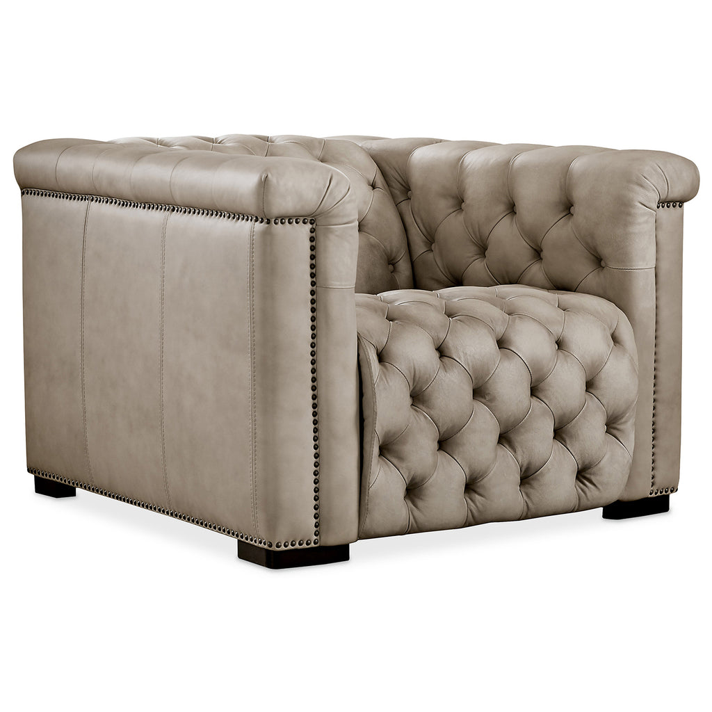 Inspire awe with your family and friends, who will never believe a chair as stunning as the Savion Grandier transforms into a power recliner with a smoothly operating control button. What's more, the Savion has an adjustable headrest, inviting you to lean back and relax your upper body while watching TV, reading or conversing. Savion blends classic elegance with modern flair, combining traditional button-tufted tailoring with a sleek profile back. The beautiful Giovanni Taupe leather cover is finished for stain protection and is hand wiped, offering character, authenticity and sophisticated appeal.