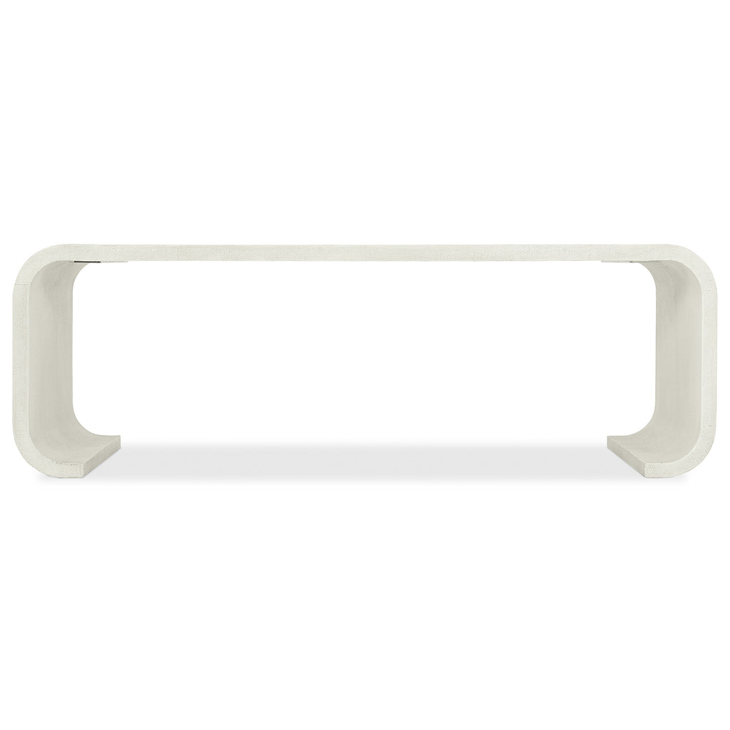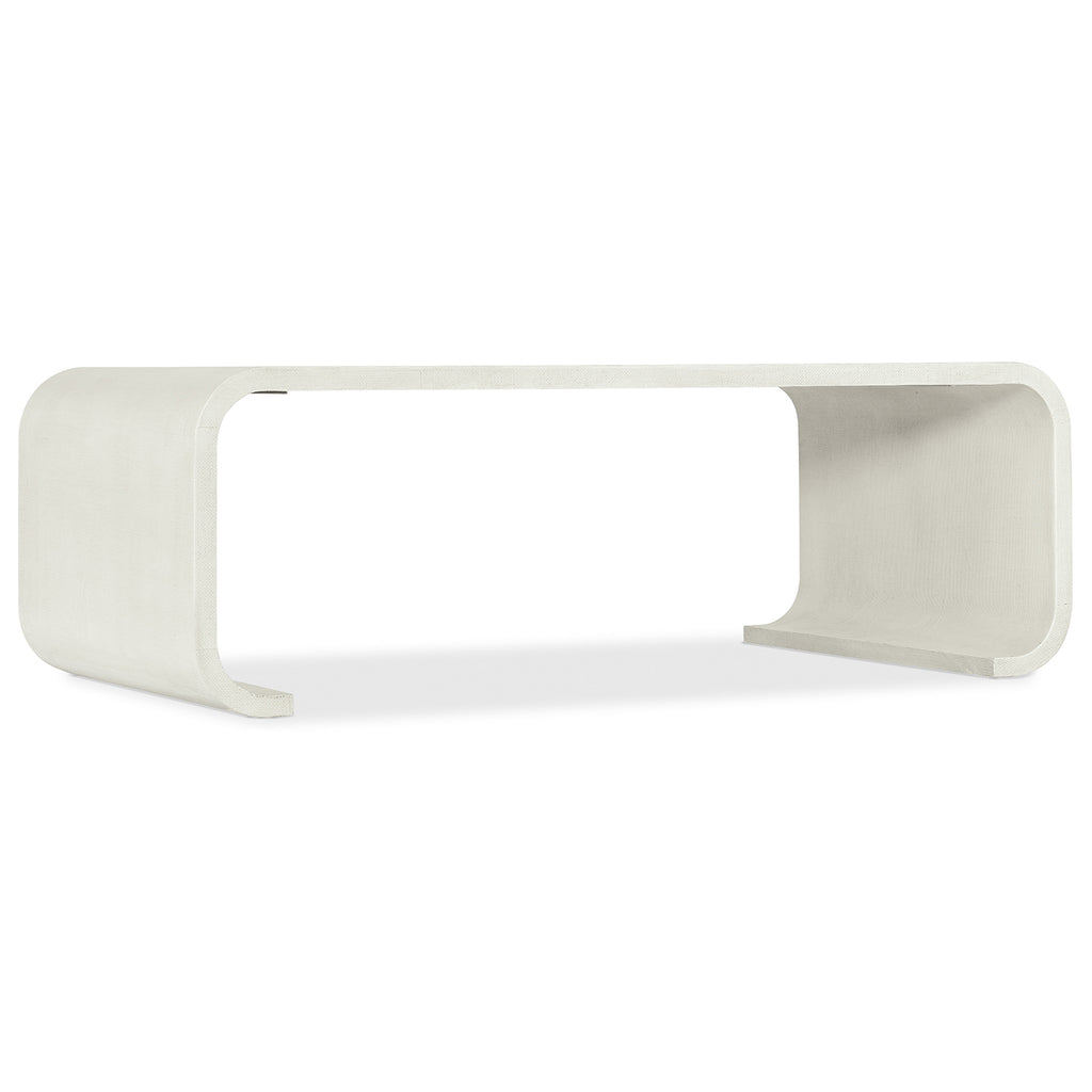 Soft, modern and organic, the Kai Cocktail Table in a rounded rectangle shape is crafted of Wood and Raffia in the soothing Sand Dollar finish, a white lacquered grasscloth to create a spa-like ambience.