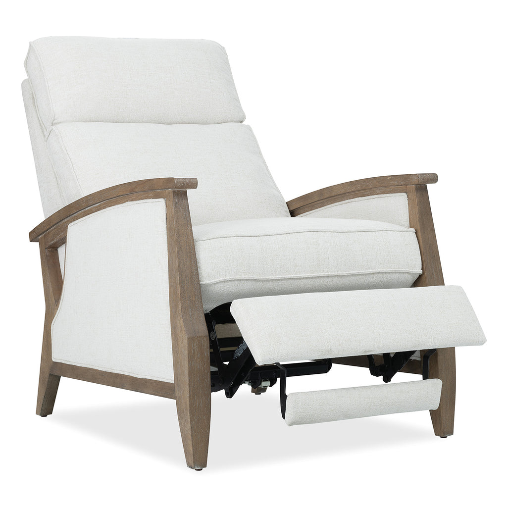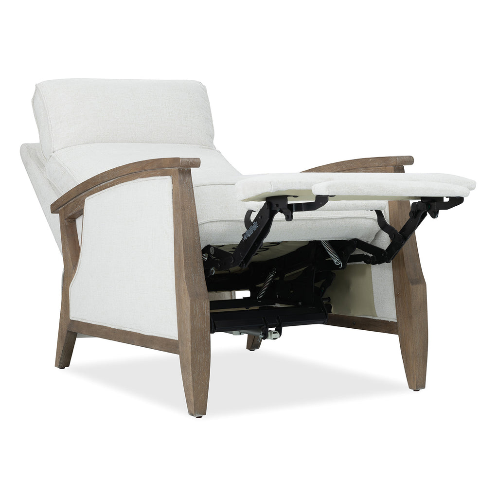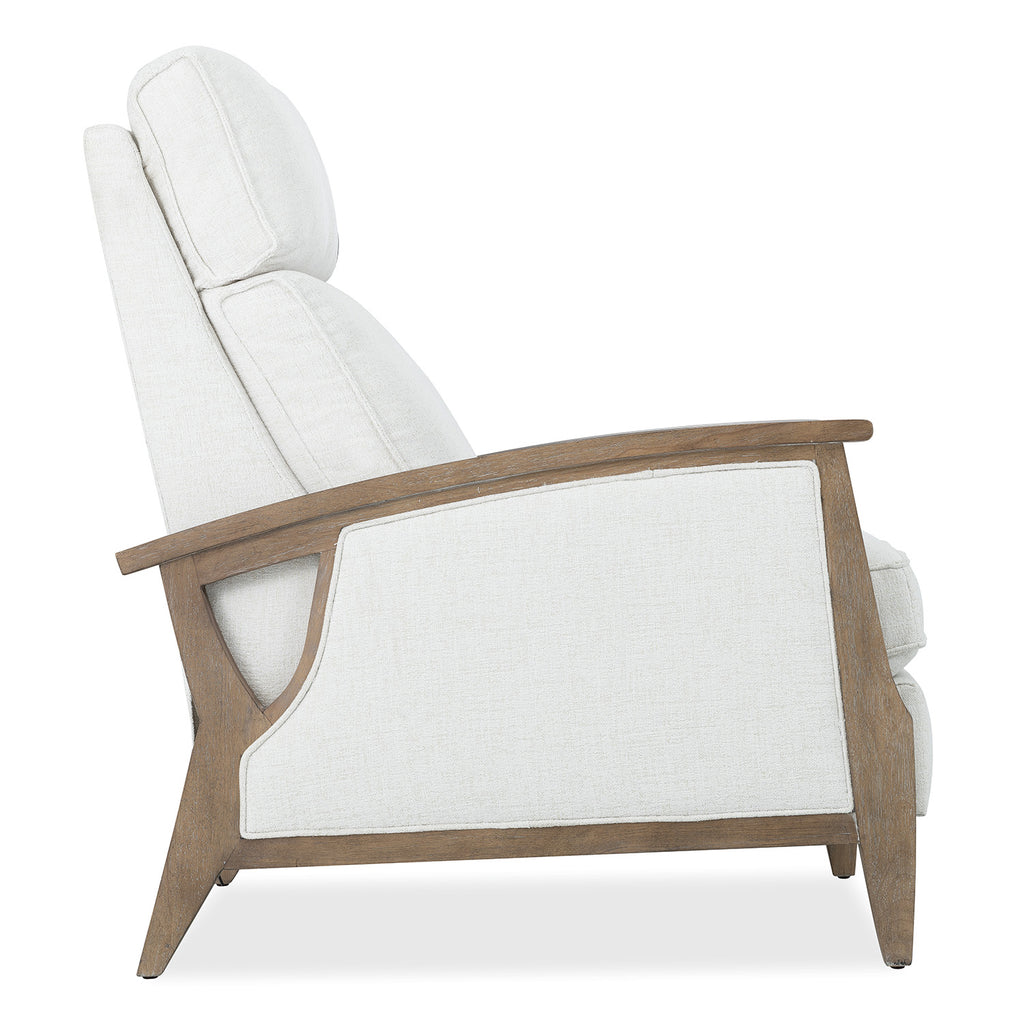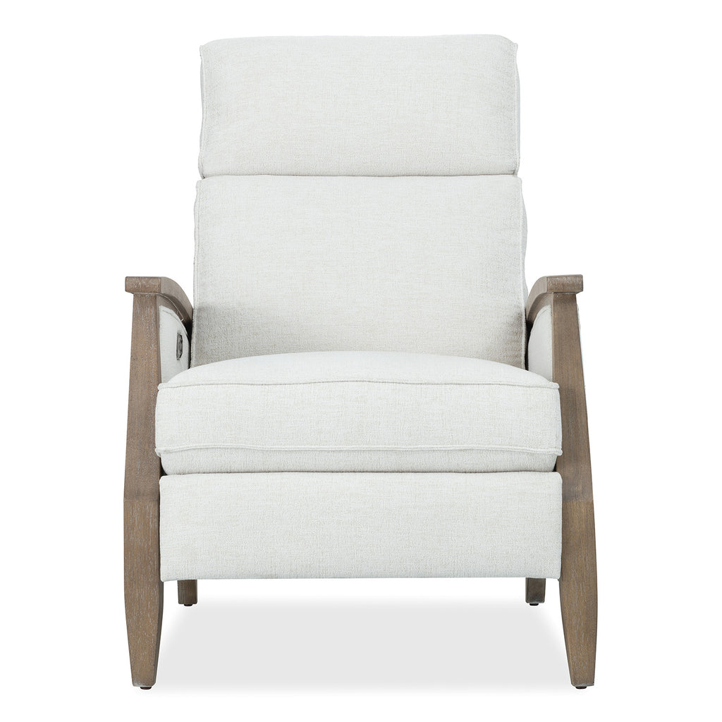 The Ward Recliner offers a fresh blend of soft texture and crisp structure. Upholstered in Favara Ivory performance fabric and supported by a light wood frame, it features power reclining and headrest functionality, plus USB charging. A refined choice for relaxed transitional interiors or coastal-inspired rooms. Hooker Furniture Upholstery is a designer-inspired collection of upscale leather seating that includes versatile reclining chairs, modern-day reclining sofas, eclectic club and artisan accent chairs, as well as a selection of executive desk chairs for the home. Designed and curated to appeal to a variety of style tastes, each piece from Hooker Furniture Upholstery is meticulously crafted in a unique selection of textures and hues.