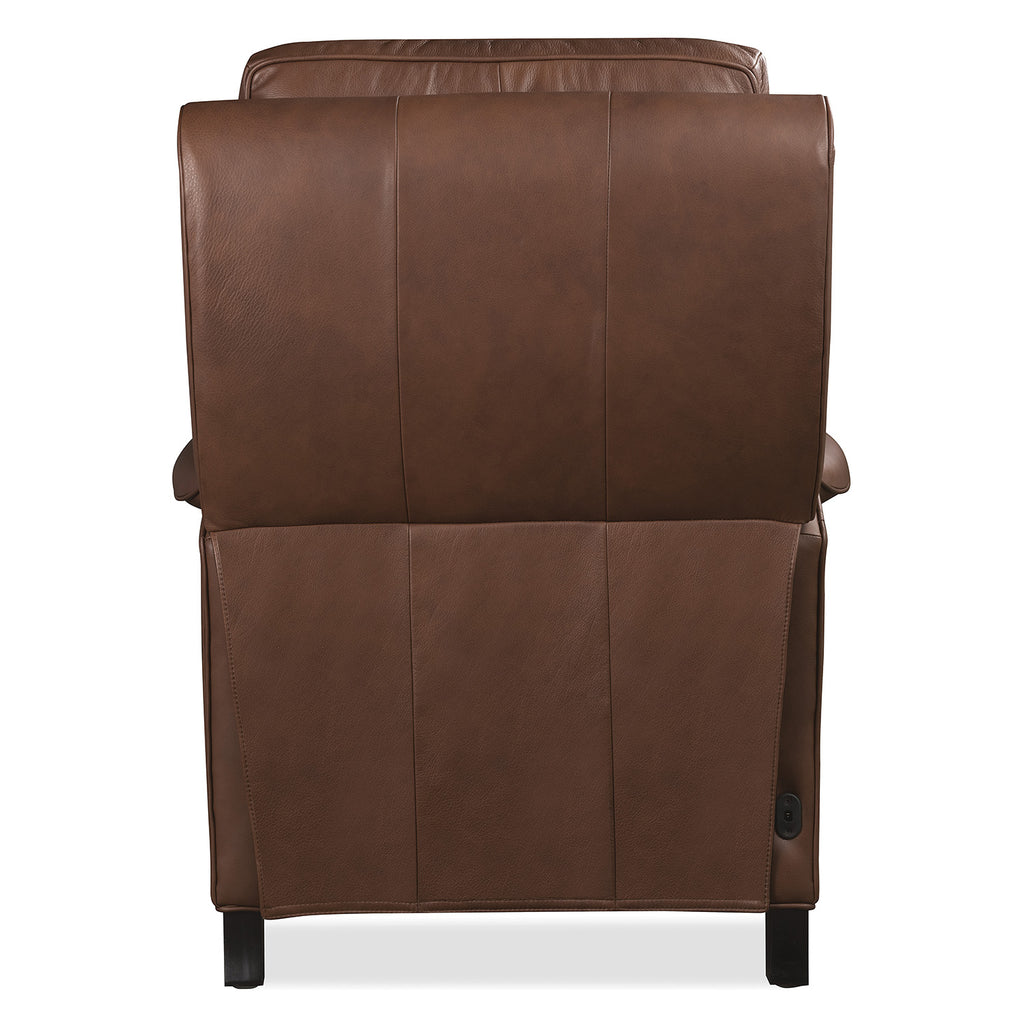 The Wrenn Recliner in Ankur Saddle leather delivers warm tones and elevated comfort. Perfectly proportioned with power headrest, USB functionality, and dark tapered wood legs, this recliner blends transitional appeal with modern convenience for any inviting seating area. Hooker Furniture Upholstery is a designer-inspired collection of upscale leather seating that includes versatile reclining chairs, modern-day reclining sofas, eclectic club and artisan accent chairs, as well as a selection of executive desk chairs for the home. Designed and curated to appeal to a variety of style tastes, each piece from Hooker Furniture Upholstery is meticulously crafted in a unique selection of textures and hues.