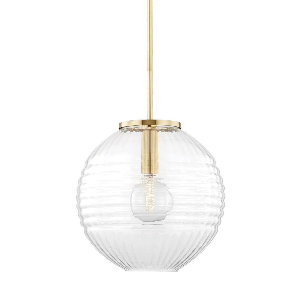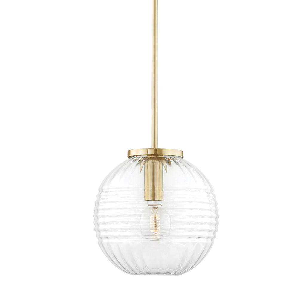 Renowned for built-to-last quality with a timeless feel, Hudson Valley offers a modern lighting collection with elegant touches, recalling vintage inspiration. Shed a little light on your space with modern pendants by Hudson Valley Lighting, which suspend from the ceiling of your dining room or kitchen island, functioning as both practical and elegant. Deceptively simple, the Hudson Valley Bay Ridge pendant is crafted using a very complex glass-blowing technique that's as sophisticated as the fixture itself. This globe pendant begins with horizontal ribs on the outside followed by vertical ribs on the inside, creating a stunning cross-hatching effect. A single carbon filament bulb shines beautifully through the clear-glass globe.