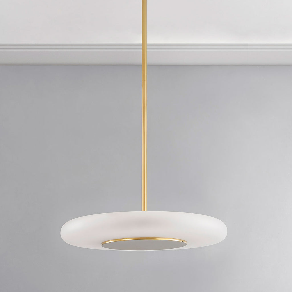 Renowned for built-to-last quality with a timeless feel, Hudson Valley offers a modern lighting collection with elegant touches, recalling vintage inspiration. The Hudson Valley Blyford pendant's sleek and minimal design has an orbit-like quality that draws the eye around and around. The clear etched glass is accented by streamlined Aged Brass and Black Nickel metalwork, bringing a simple sophistication to the ceiling.