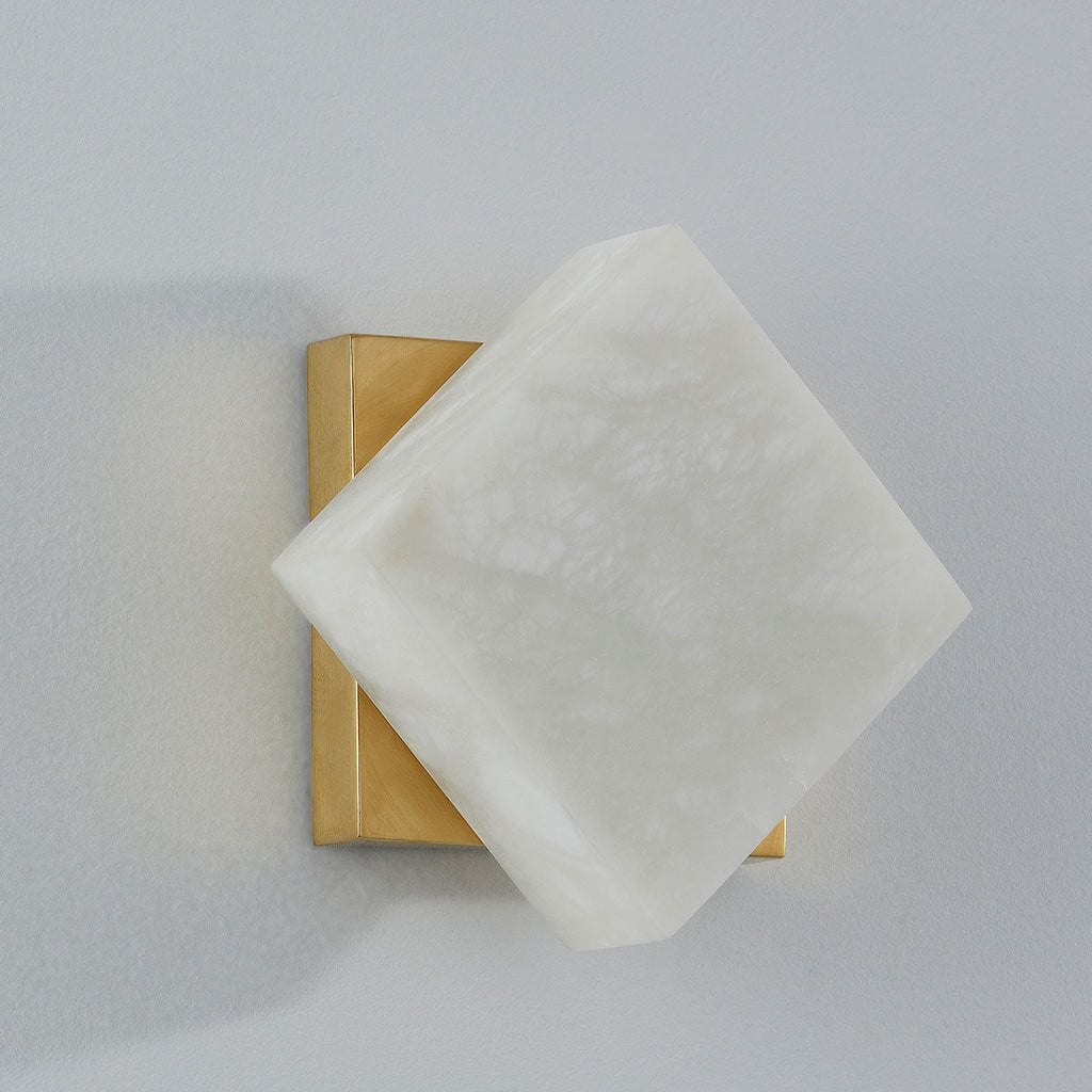 Renowned for built-to-last quality with a timeless feel, Hudson Valley offers a modern lighting collection with elegant touches, recalling vintage inspiration. The Hudson Valley Brockton features a thick diamond-shaped alabaster shade is set on a square Aged Brass backplate. Light fills the stone and reflects beautifully off the visible metal corners behind, while the smooth lines and rounded edges give the sconce and flush-mount a soft, soothing feel.