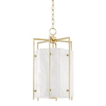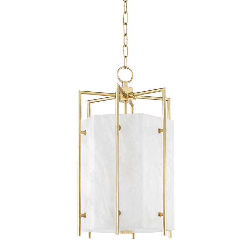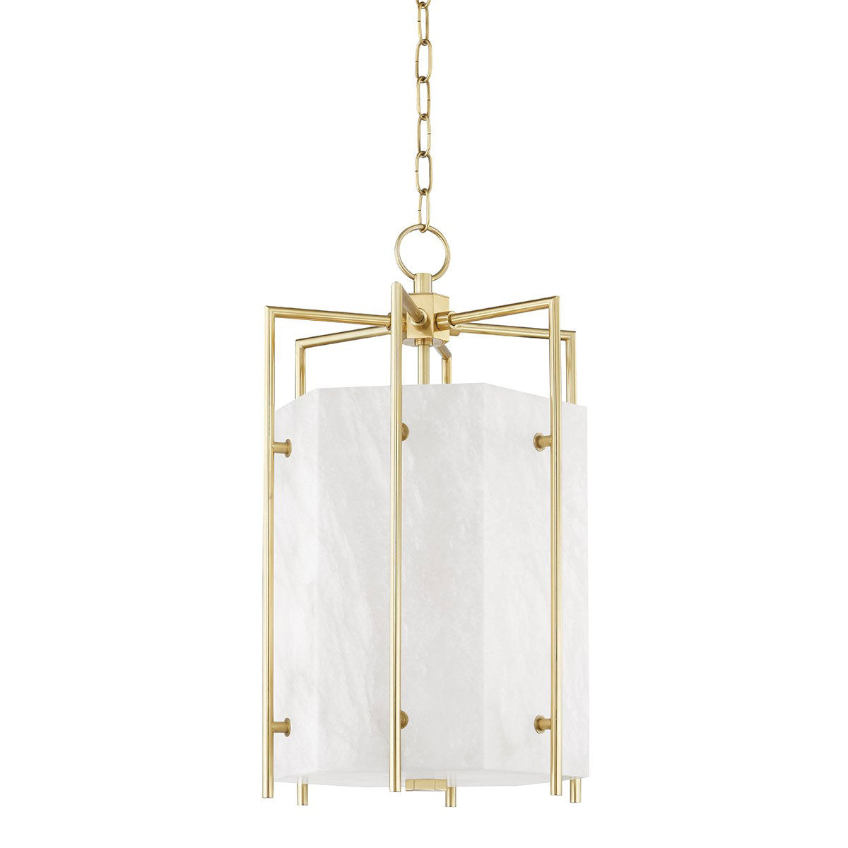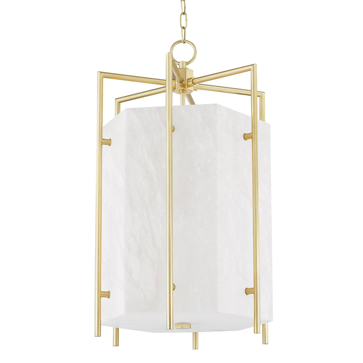 Renowned for built-to-last quality with a timeless feel, Hudson Valley offers a modern lighting collection with elegant touches, recalling vintage inspiration. Shed a little light on your space with modern lanterns by Hudson Valley Lighting, which suspend from the ceiling of your dining room or kitchen island, functioning as both practical and elegant. Six Spanish alabaster panels held in place by long, angled metal arms come together to create Flatbush's spectacular style. With alabaster at the top as well as the bottom, LEDs light up the alabaster fixture with a gorgeous, soft, lit-from-within glow. Available in Aged Brass and Polished Nickel.