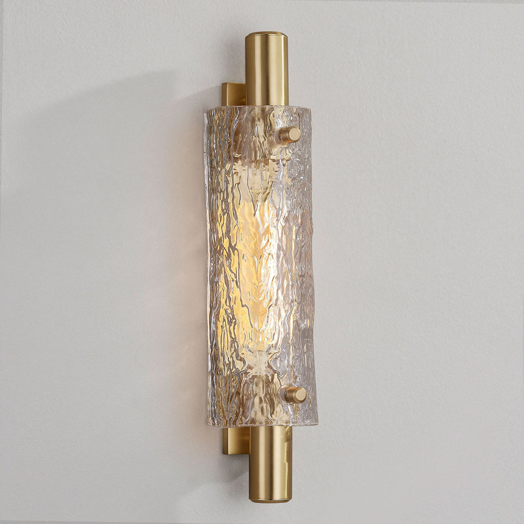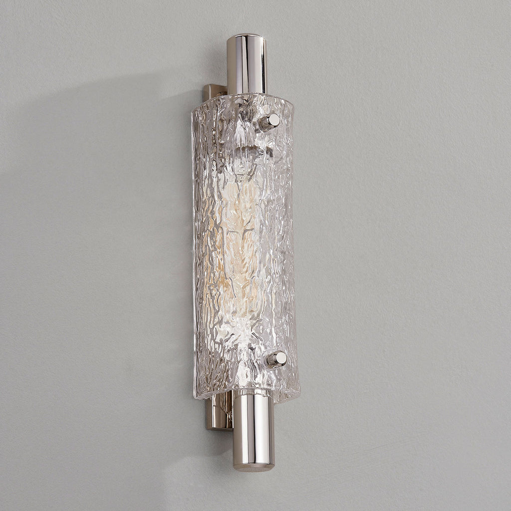 Renowned for built-to-last quality with a timeless feel, Hudson Valley offers a modern lighting collection with elegant touches, recalling vintage inspiration. Clean lines and a familiar silhouette pair with unique materials and thoughtful details to give Harwich an elevated look. A curved piastra glass shade hugs a thick cylindrical metal frame and rectangular backplate. The stunning textured glass technique looks glamorous and gives this piece a luxurious quality. The Hudson Valley Harwich wall sconce is available as a 1-light or 2-light sconce in two finishes and can be mounted horizontally or vertically.