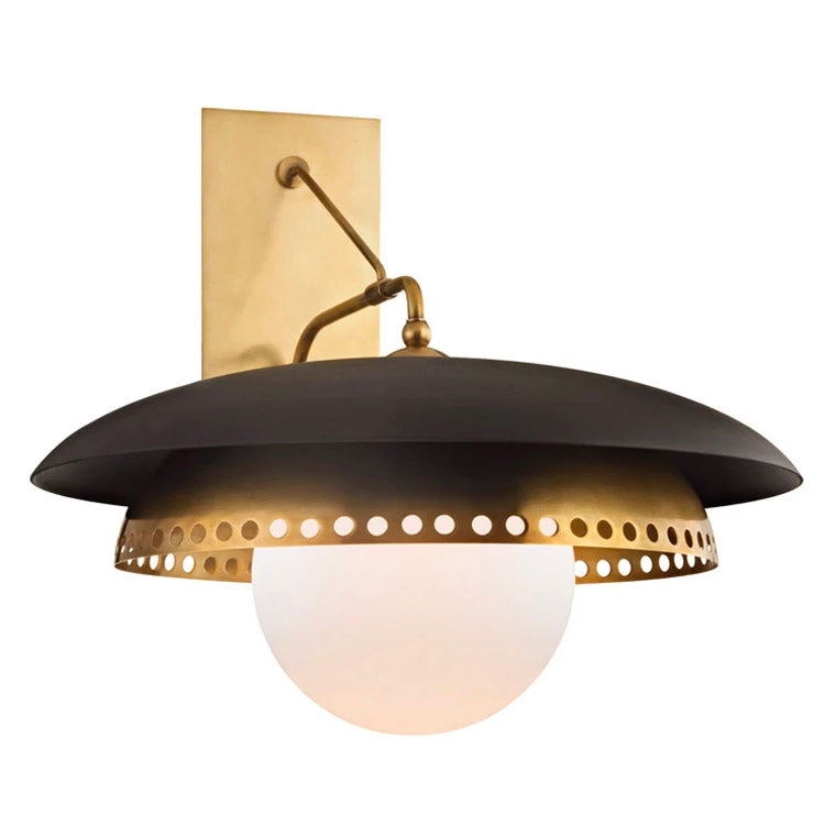 Renowned for built-to-last quality with a timeless feel, Hudson Valley offers a modern lighting collection with elegant touches, recalling vintage inspiration. From dens and dining rooms to bedsides and bathrooms, modern Hudson Valley wall sconces add a pop of light and versatile elegance. The Hudson Valley Herkimer wall sconce's thick top shade contrasts in texture and width with the perforated shade it envelops. At the center, an opal etched ball hangs low, softly diffusing the light. Herkimer presents a unique update of Danish mid-century modern lighting principles.