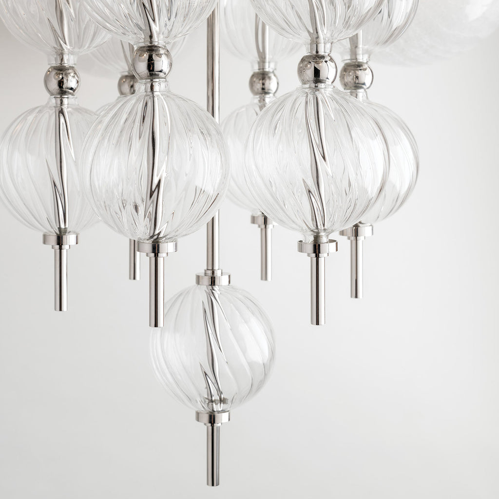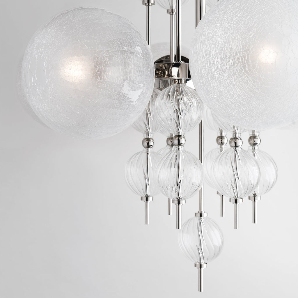 Whimsical and youthful, fresh and modern, Hudson Valley Lighting Calypso brings big top flair to the space it lights up. A celebration of fun and geometry, its maximalist aesthetic with fluted-spiral hollow glass orbs and crackle-glass sphere diffusers makes it a wow-factor fixture which will stand out in a room with more restrained design.