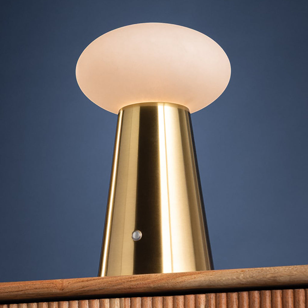 Measuring just 10 inches in height, Hudson Valley Lighting Cashel packs standout style into a petite format. Featuring a cloud glass shade and a conical metal base finished in Aged Brass, this lamp adds a playful pop of interest to any space. Highly functional yet delightfully fun, it imparts a touch of modernity that is perfect for accenting desks, nightstands, and other smaller surfaces.