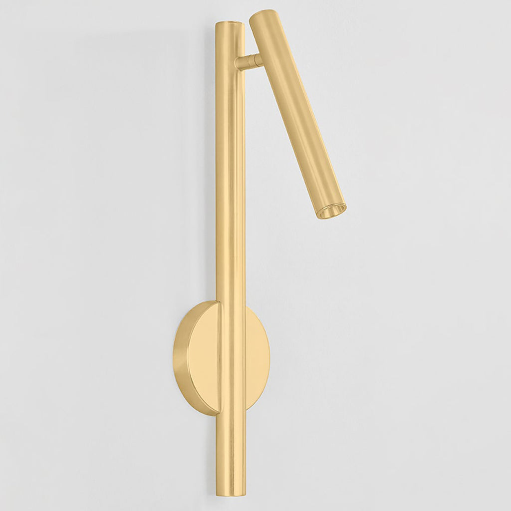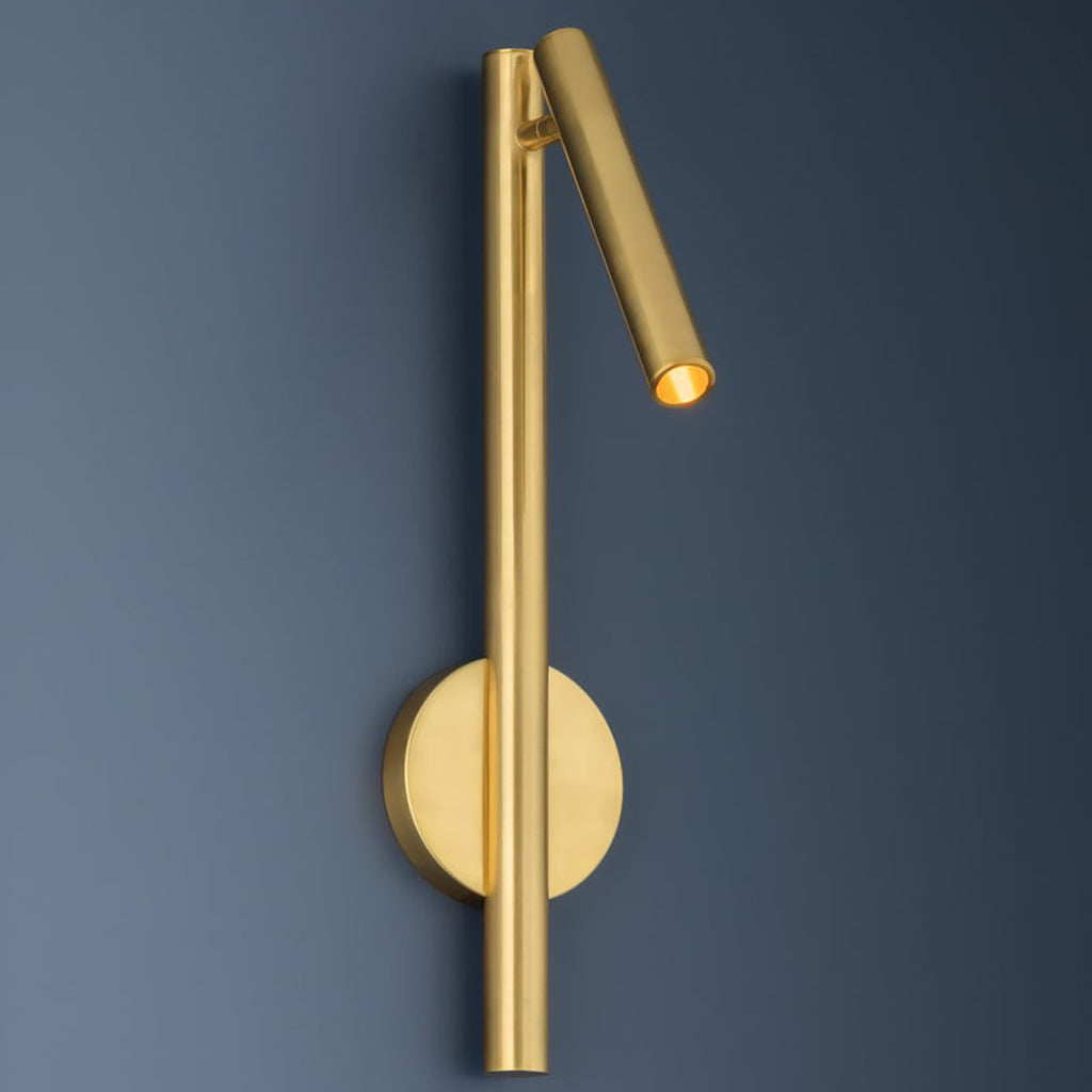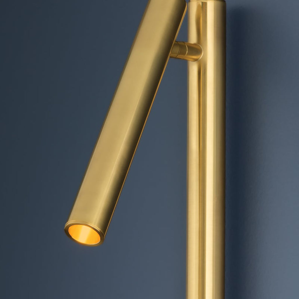 Incorporating CSL’s innovative ‘Whisper’ technology, Hudson Valley Lighting Circleville cuts a sleek figure in Aged Brass. While it might read as industrial, the elongated tube forms lean towards modernist aesthetics. The articulating shade allows precise control to create a powerful spotlight where needed. Available as a sconce and floor lamp.