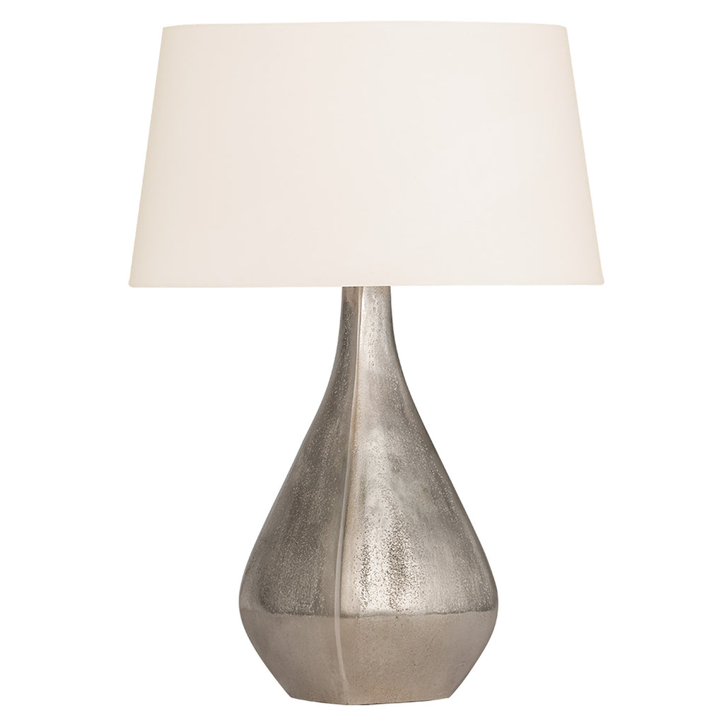 The Hudson Valley Lighting Fieldston table lamp is cool and collected with generous curves and a subtle shine. A Warm Silver finish over durable cast aluminum catches and reflects light across the base, enhanced by the faceted edges and textural grain. Topped with a large white linen drum shade, Fieldston’s artistic flair makes it a dream accent piece for a side table or console.