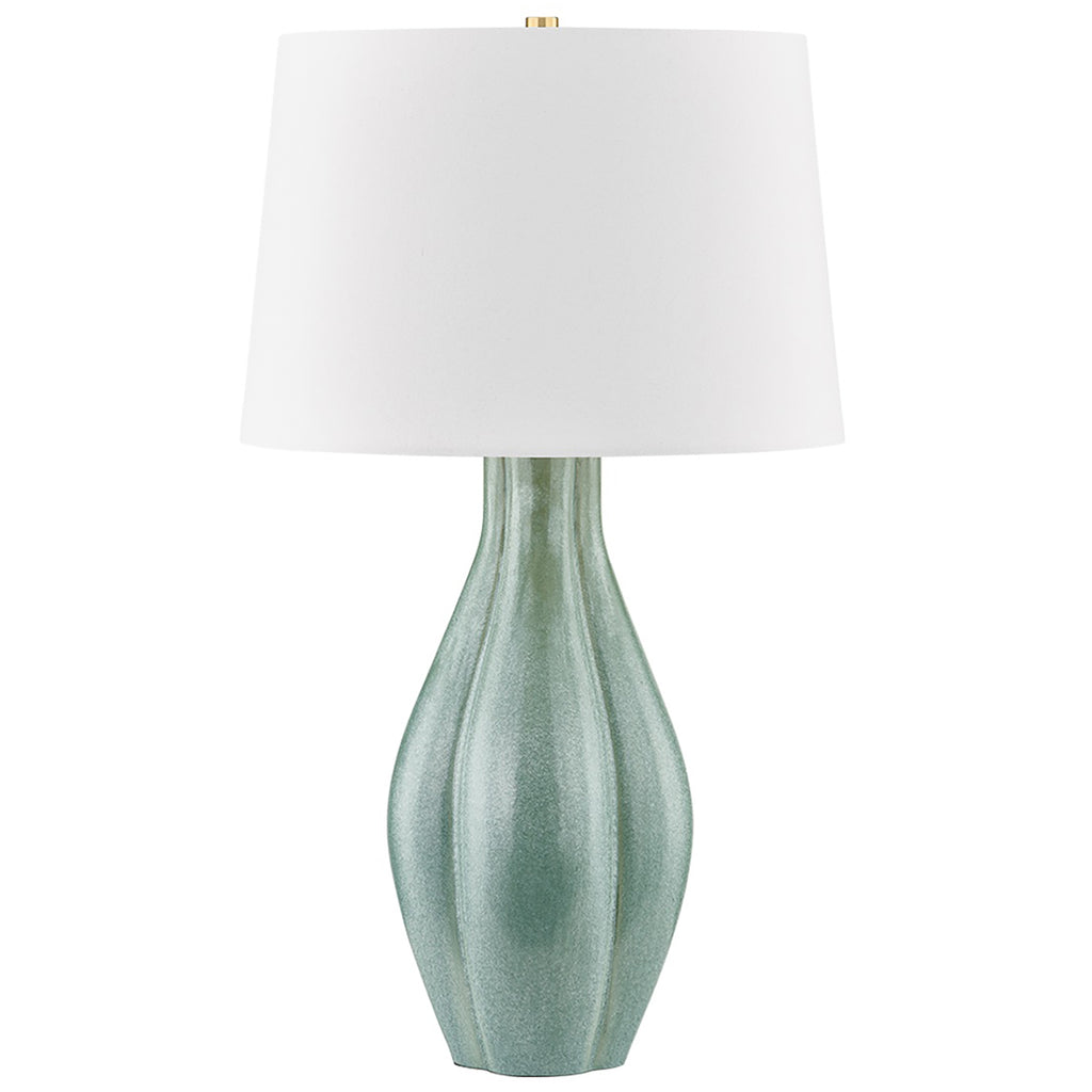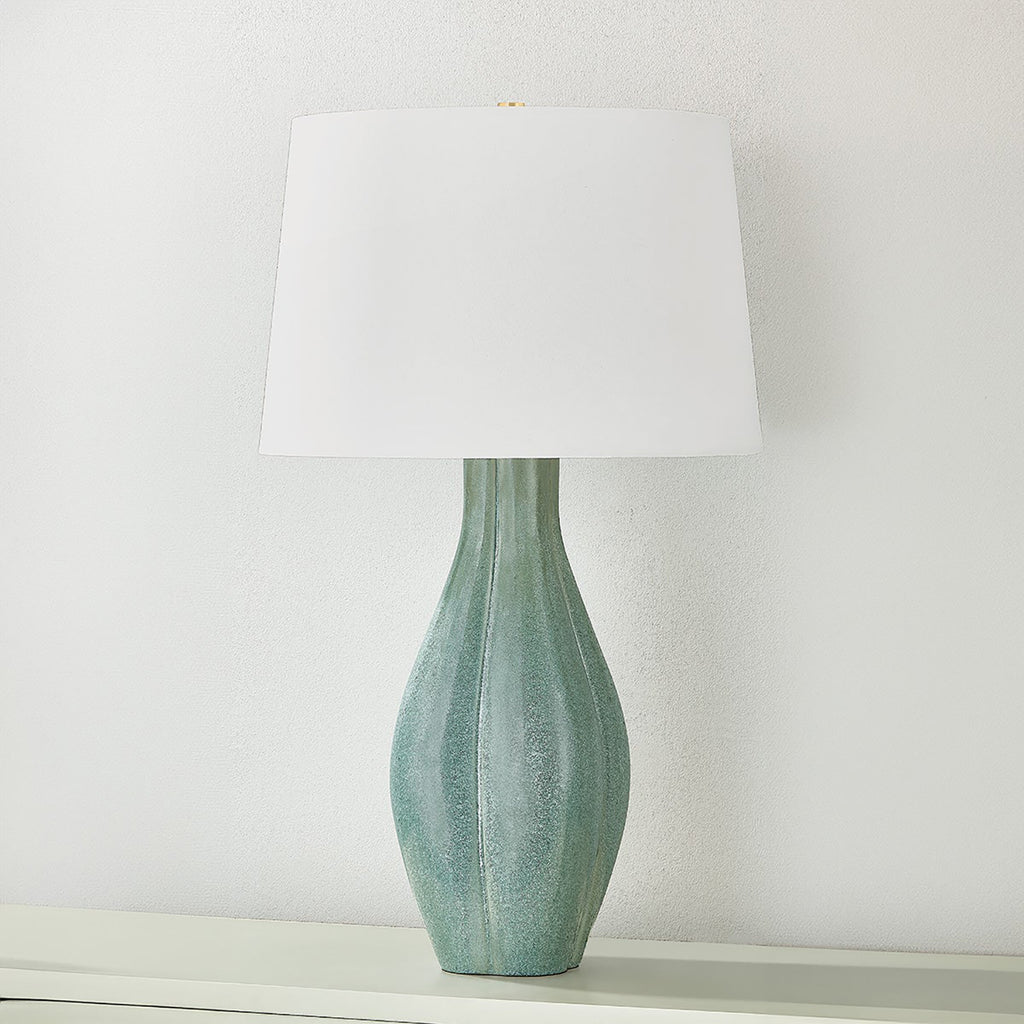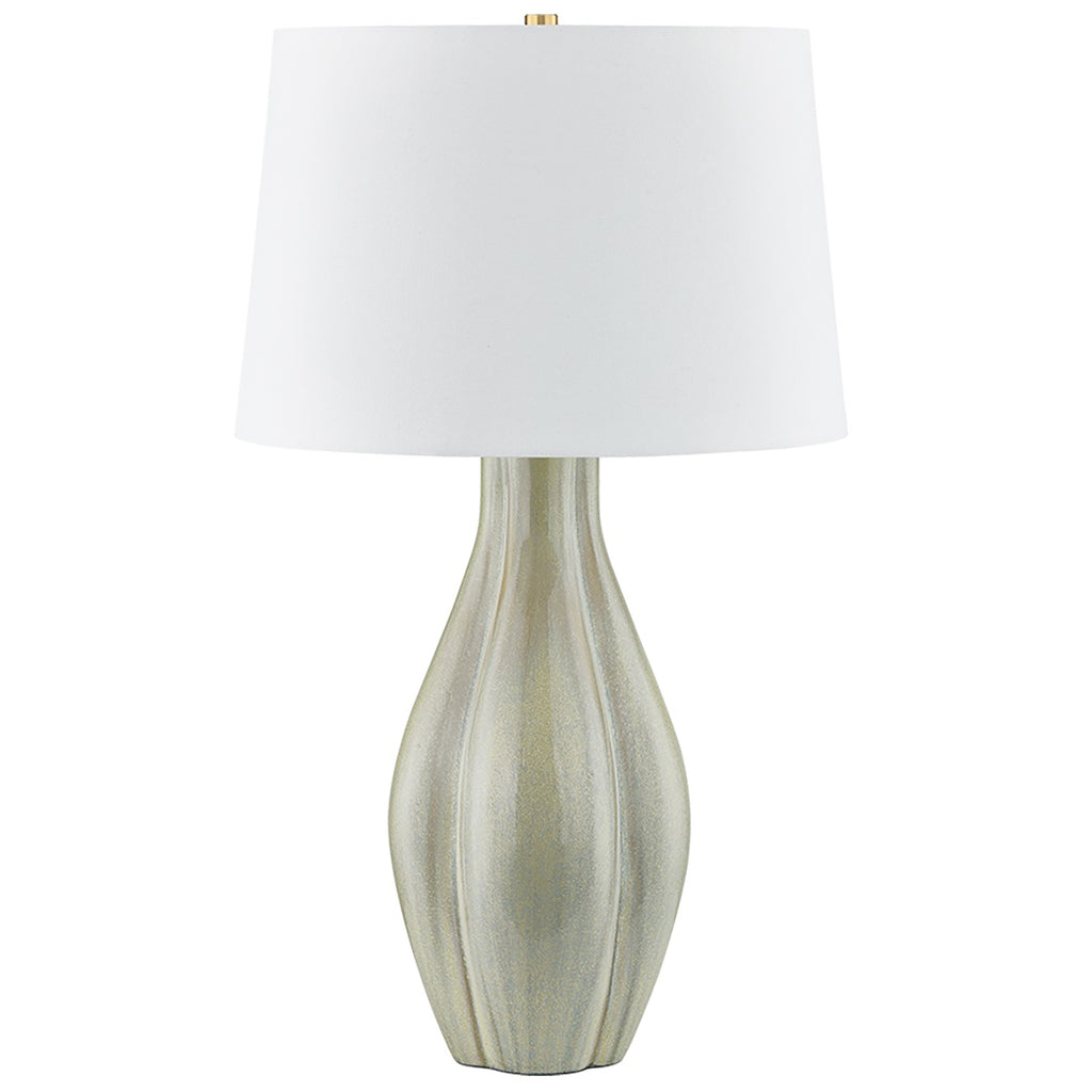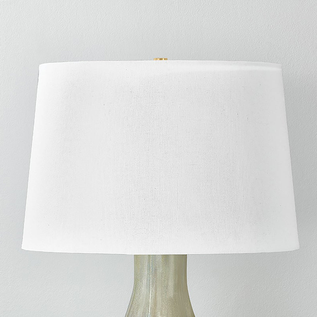 Reminiscent of clouds, three abstract shapes converge to elegantly form the base of this sculptural table lamp. The smooth ceramic finish gives this voluminous lamp a comforting feel that results in a sense of serenity wherever it is placed. A large linen drum shade balances the perfect proportions of Hudson Valley Lighting Galloway.
