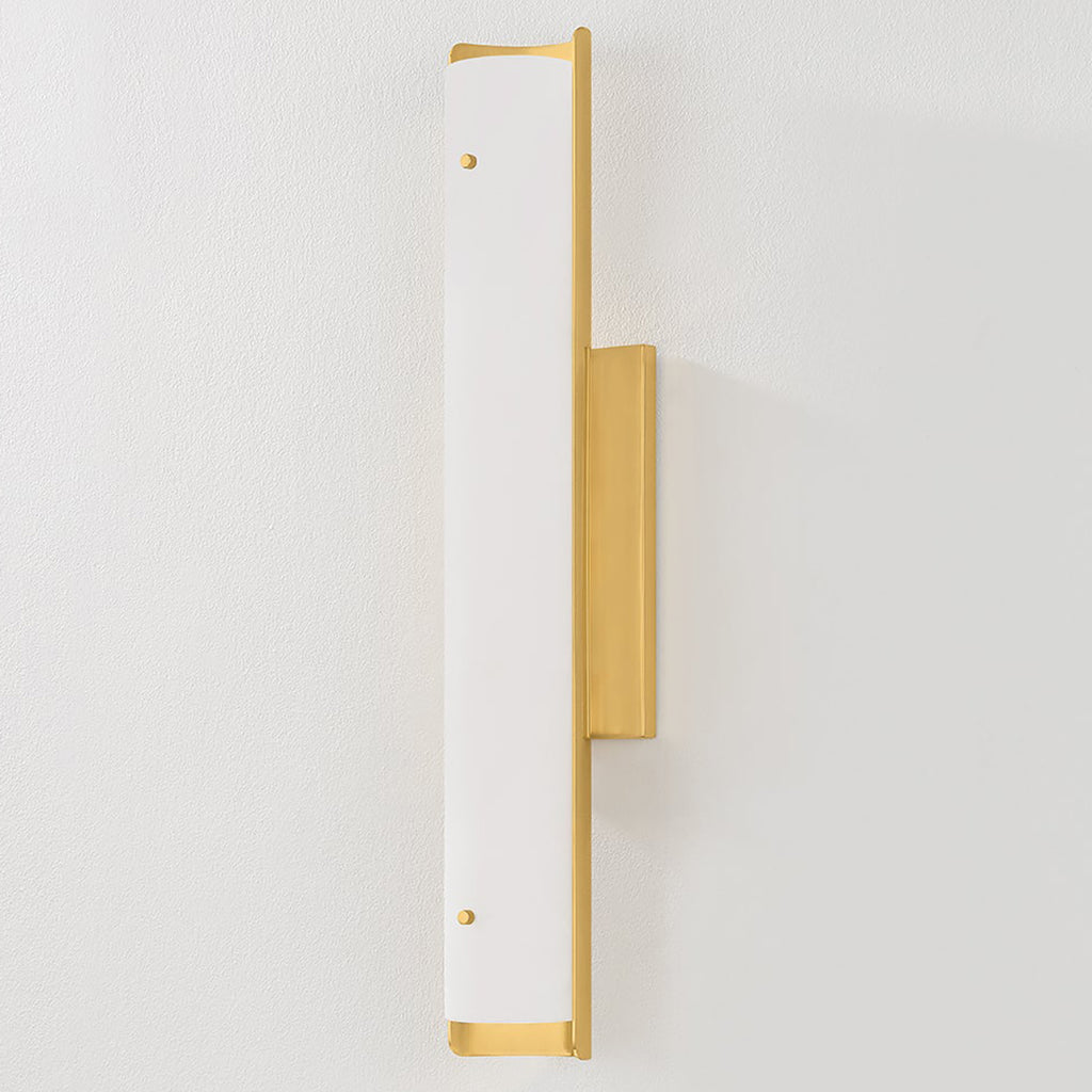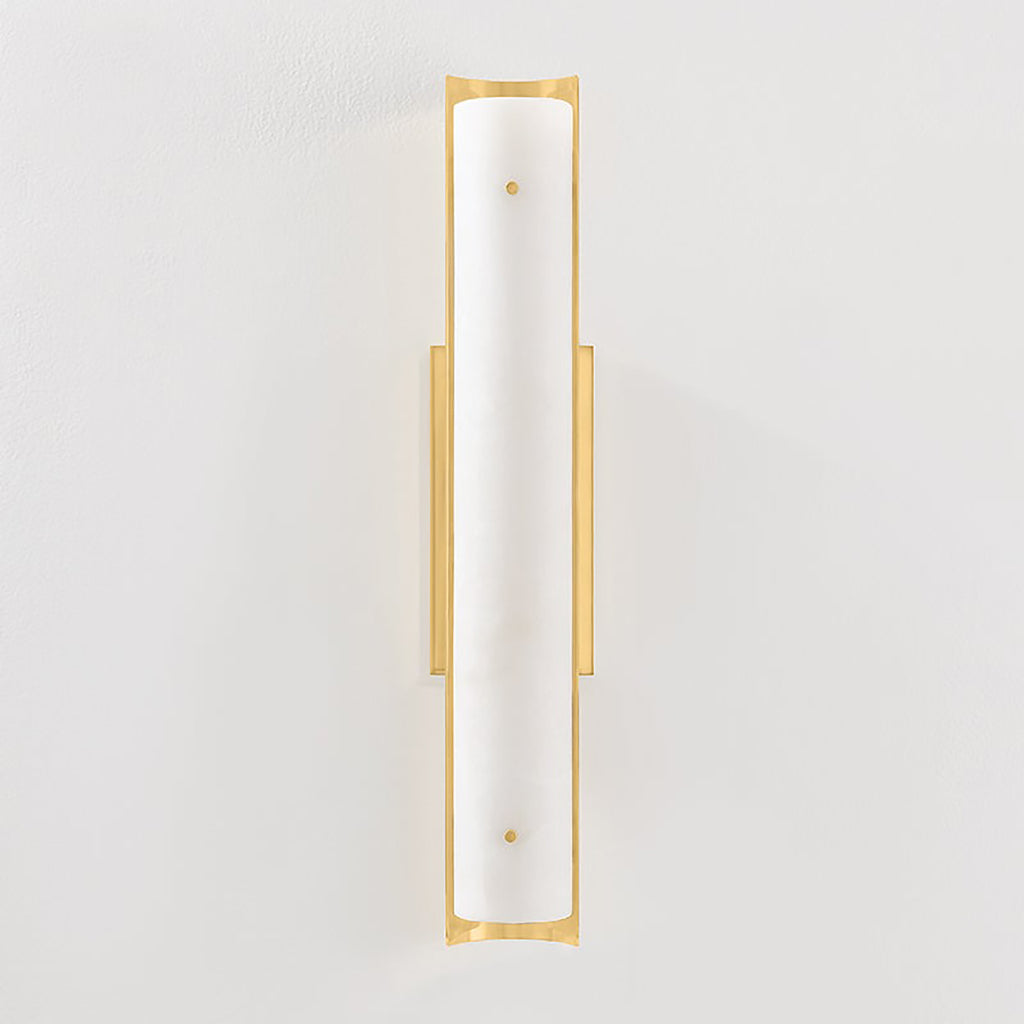 The upscale minimal design language of Hudson Valley Lighting Lucio makes for an easy crossover from living to bath and powder room spaces. A striking inner alabaster bar is framed by Aged Brass metalwork, creating a harmony of fine materials. Delicate pins secure the stone in place, adding a decorative detail to the sleek silhouette. Lucio is available in two sizes.
