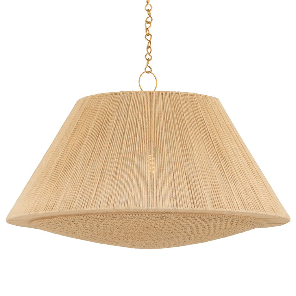 Woven in different patterns and directions, the fine details of Hudson Valley Lighting Mystic create a compelling display of craftsmanship. The side walls feature a traditional vertical string construction, while the lower surface has been constructed using a decorative crochet technique. The dyed jute fibers lend an air of natural softness, making this pendant perfect for eclectic or coastal design themes. Mystic is available in two sizes.