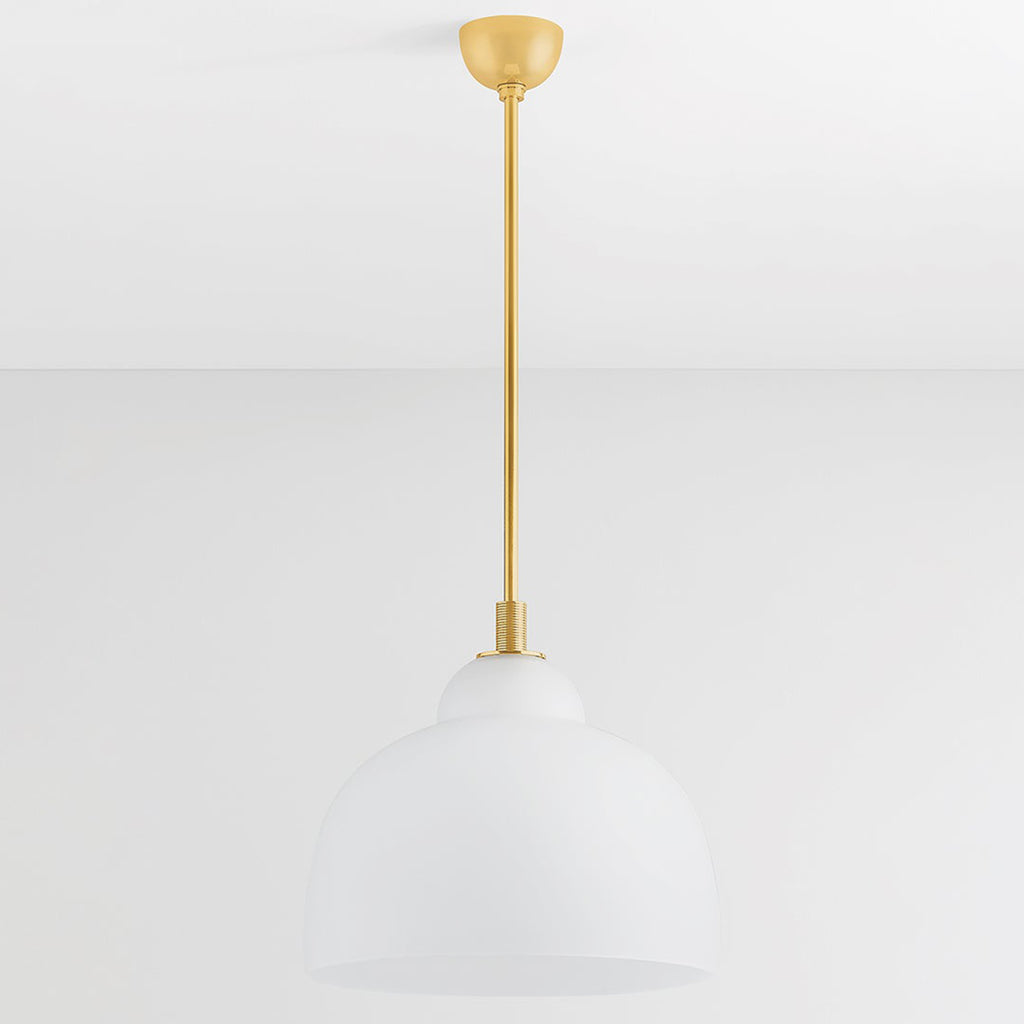 Playing on the layering of glass forms, this elegant pendant concept is a contemporary treasure. The etched outer shade fits seamlessly over an internal glass globe of the same finish, creating a distinctive bubble-like silhouette. Available in two sizes, Oberon floats overhead with serene lightness.