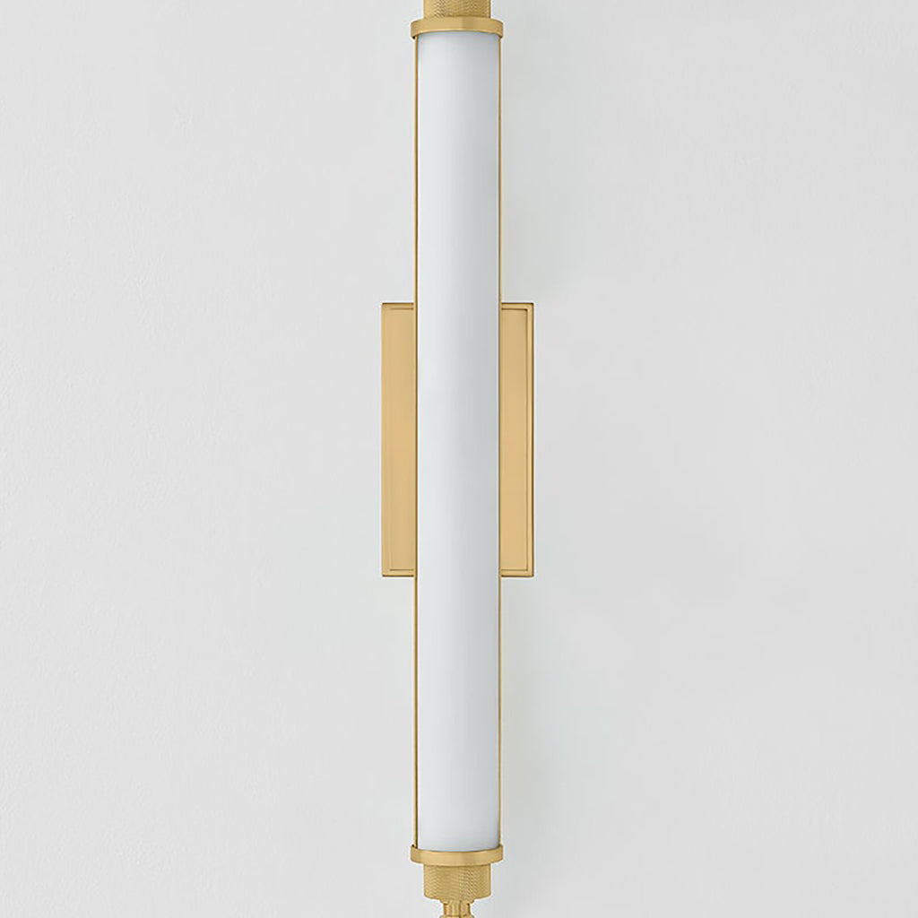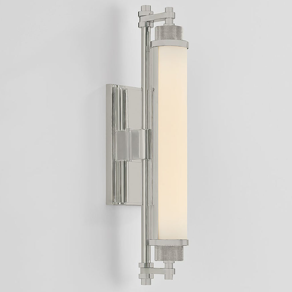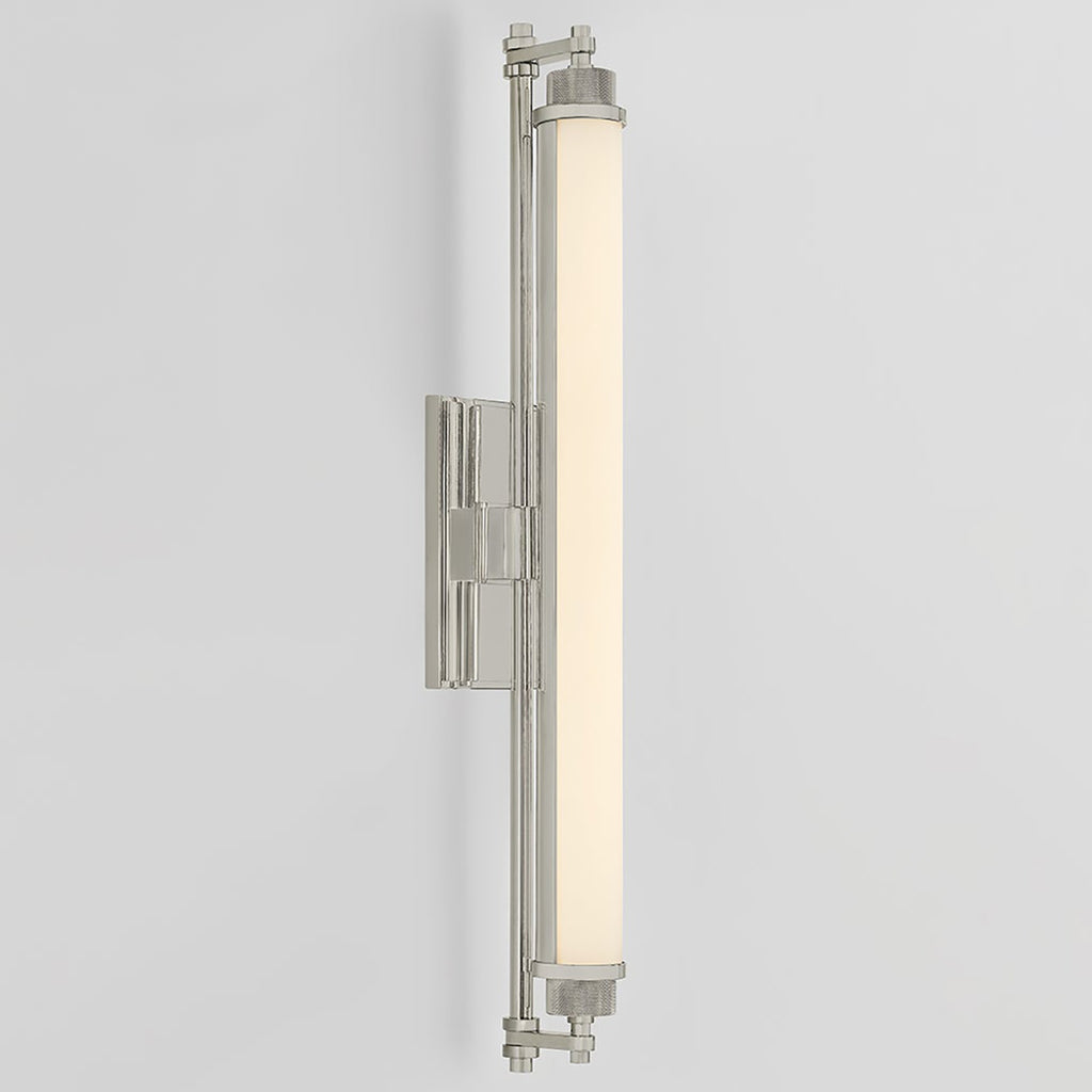 Designed for bath and powder rooms, Hudson Valley Lighting Plandome is a sleek, machine-inspired sconce with high functionality. Featuring a single LED-lit opal matte glass tube supported by a central stem, this slender fixture can be used individually or in multiples as needed. Finished in Aged Brass or Polished Nickel, the metalwork adds a stylish quality to a thoroughly modern sconce. Available in two sizes.