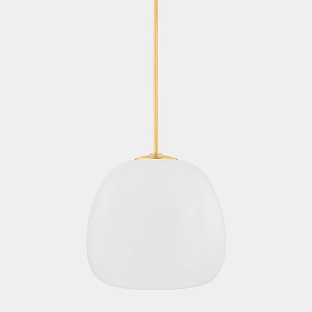 Inspired by the shape of an apple, Hudson Valley Lighting Scranton features a softly defined outer layer of etched glass and a narrow ‘core’ of shiny opal glass within. The freshness of the organic silhouette, paired with the sleek glass layers and metal accents, makes it perfect for a dining room or kitchen. Scranton is available in two sizes and two finishes, Aged Brass and Old Bronze.