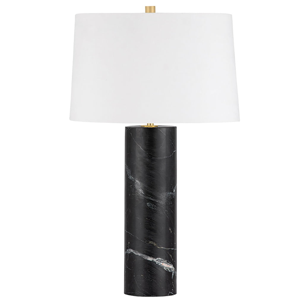 A luxurious statement piece perfect for a table or console, Hudson Valley Lighting Sprague features an elegant black marble body and classic white linen drum shade. The lightness of the shade, coupled with the visual weight of the dark base, creates a dramatic point of contrast. The delicate veining of the marble base provides a bespoke feel that’s full of character and life.