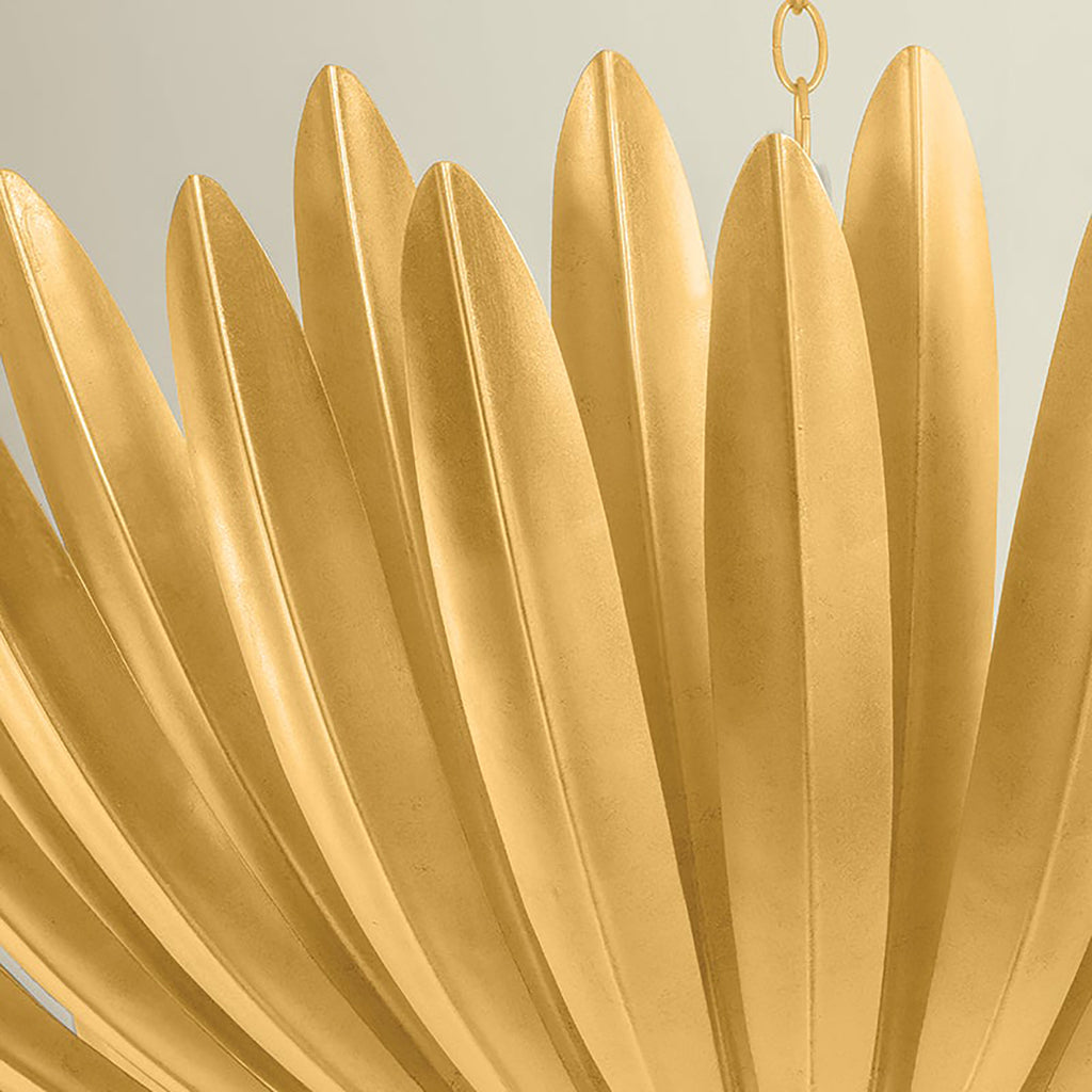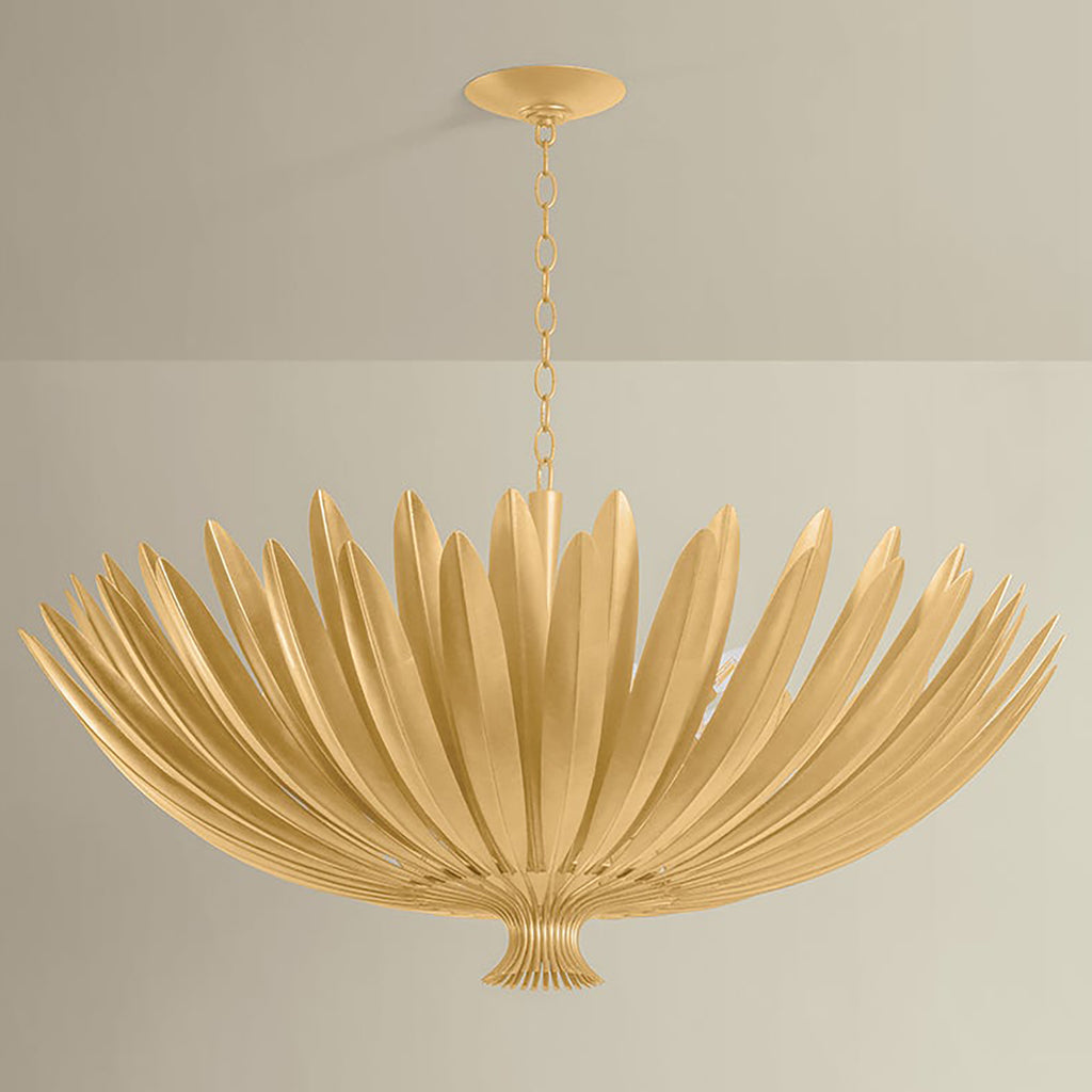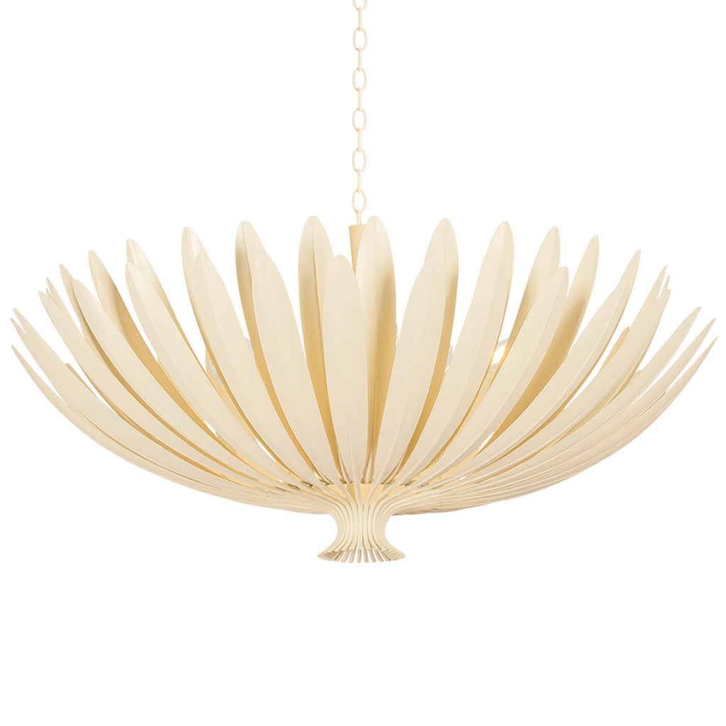 Leaning into a botanical motif, the Whitfield family is defined by elongated leaf-like metal pieces that form a glowing shade around the light source. As light emanates outwards, it filters through the layered foliage. Available as a 1-light wall sconce, a semi-flush mount with 3 lights, and three sizes of chandelier, Whitfield comes in a Vintage Gold Leaf finish or our new Cream Plaster finish, a soft alternative to white.