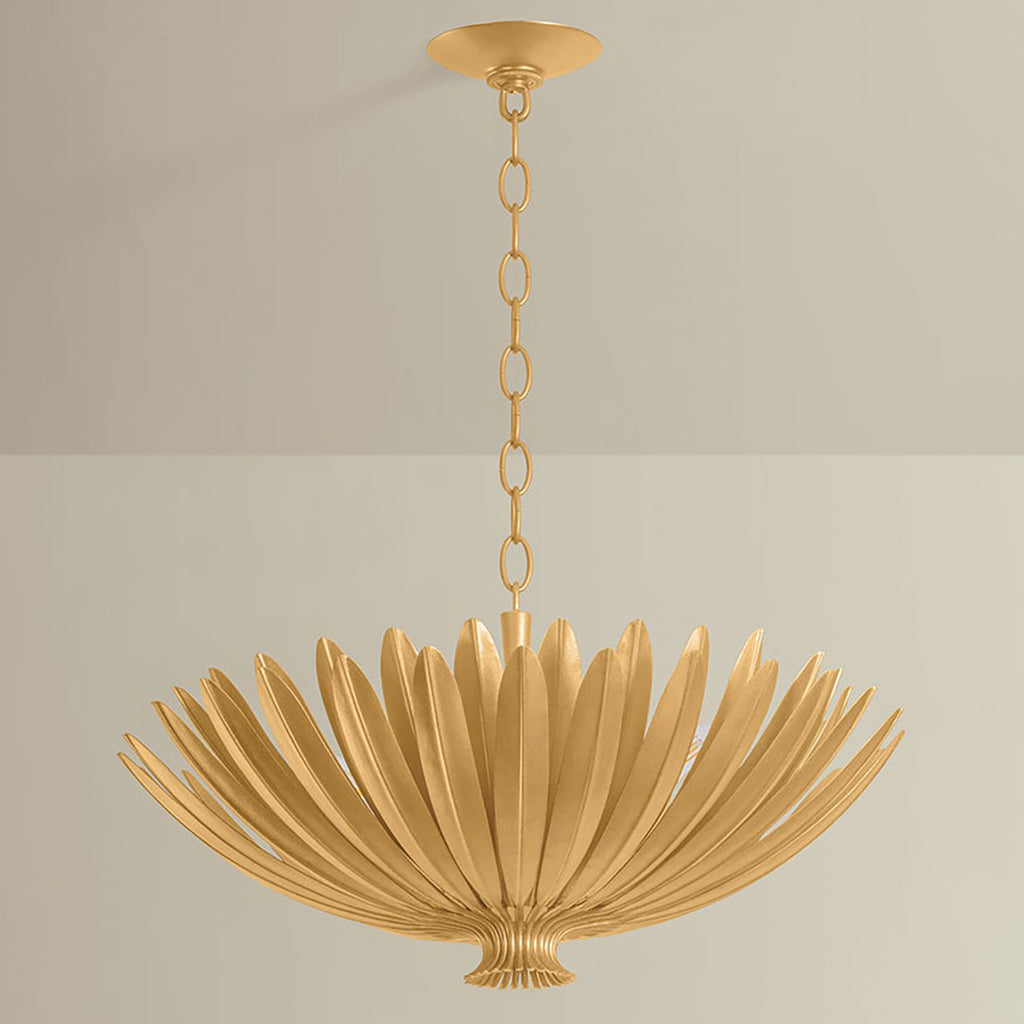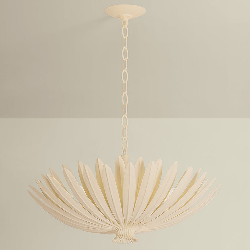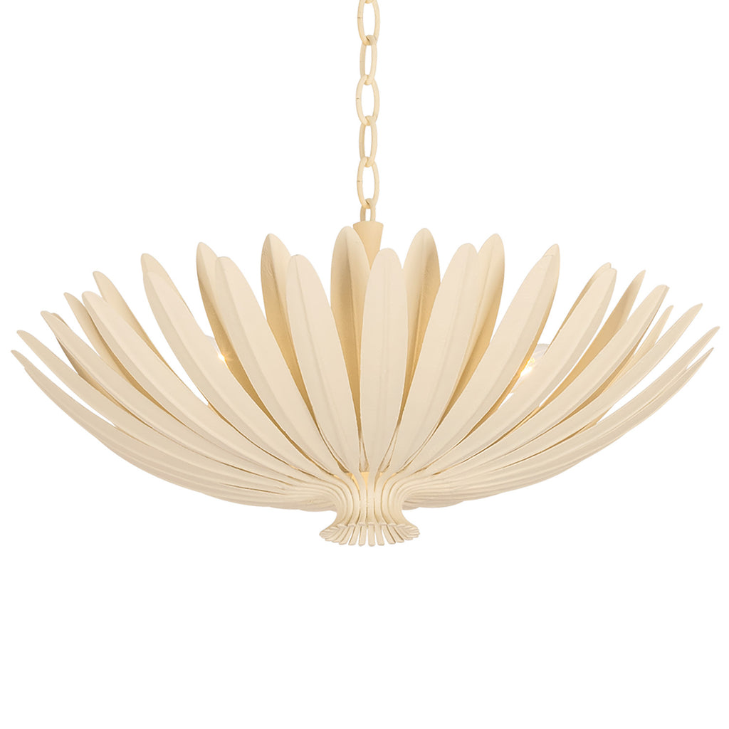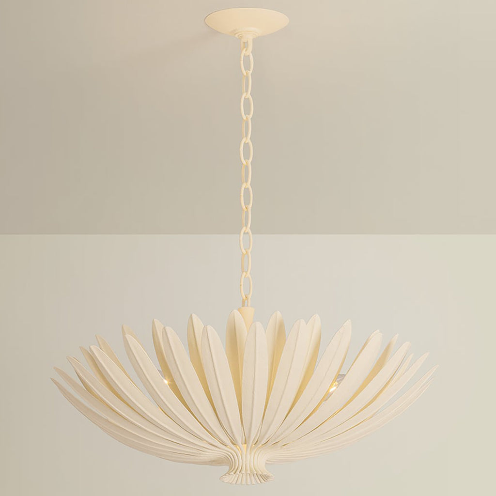 Leaning into a botanical motif, the Whitfield family is defined by elongated leaf-like metal pieces that form a glowing shade around the light source. As light emanates outwards, it filters through the layered foliage. Available as a 1-light wall sconce, a semi-flush mount with 3 lights, and three sizes of chandelier, Whitfield comes in a Vintage Gold Leaf finish or our new Cream Plaster finish, a soft alternative to white.