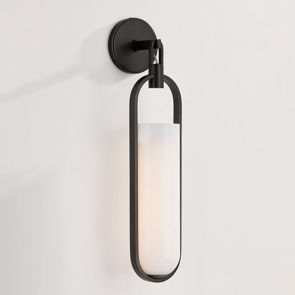 Renowned for built-to-last quality with a timeless feel, Hudson Valley offers a modern lighting collection with elegant touches, recalling vintage inspiration. An elegant capsule-shaped sconce featuring a large opal glossy glass bulb, Lorimer dangles like a lantern over small spaces. It is designed as a feature light or can be hung in multiples along a hallway for maximum impact. Based on your chosen finish, it can appear refined with shiny Aged Brass or industrial with a matte Black Brass finish.