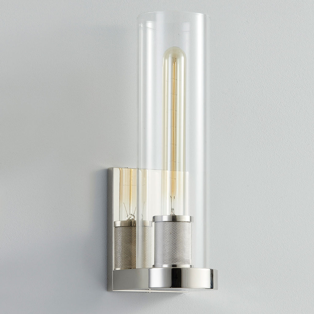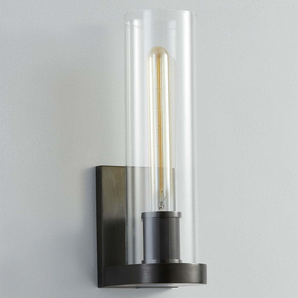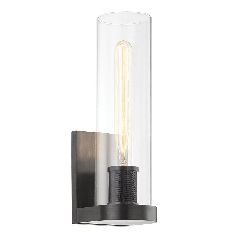 Renowned for built-to-last quality with a timeless feel, Hudson Valley offers a modern lighting collection with elegant touches, recalling vintage inspiration. With its smooth, cylindrical clear glass shade and hard-edged square metal backplate, the Hudson Valley Porter wall sconce plays with geometry to create a simple modern sconce silhouette. The knurl detailed lamp socket adds an elevated element to the design.