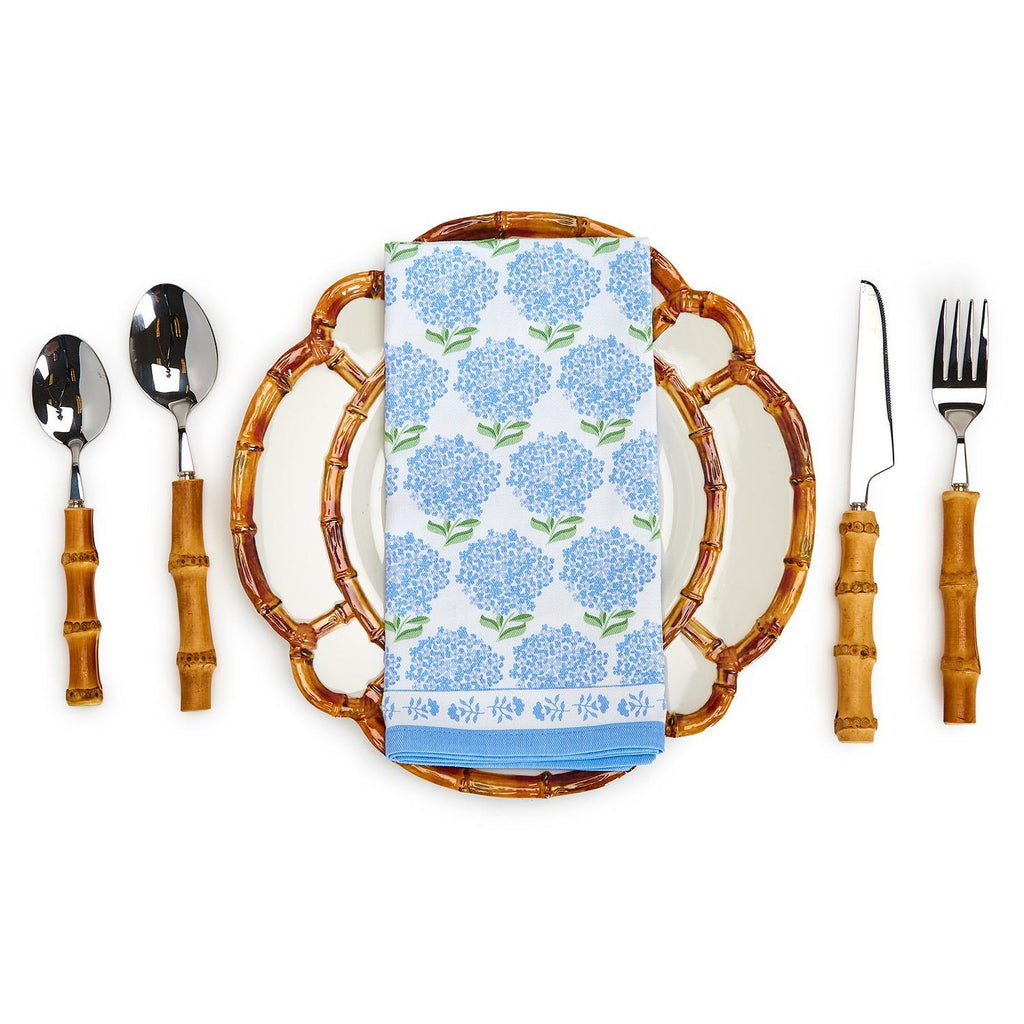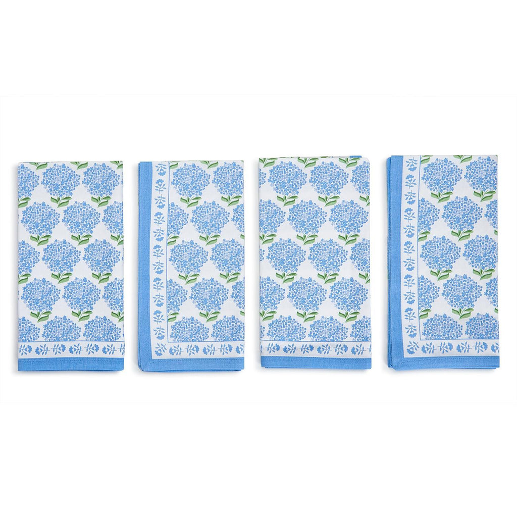Accent your kitchen with these beautifully designed fabric napkins featuring a hydrangea pattern. Made of 100% cotton that are great for absorbing all types of spills and messes. Comes as a set of 4 packed together with a simple ribbon tie.