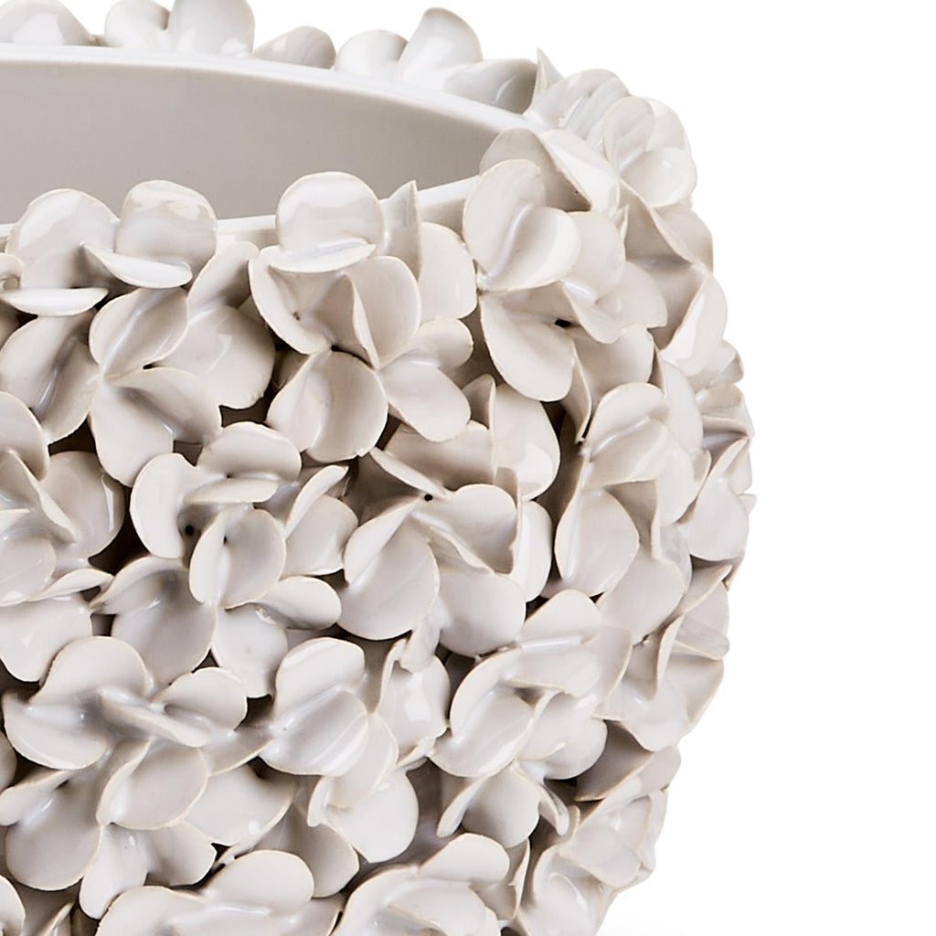 Hydrangea Blossoms have never looked so chic when interpreted in simple white. Created by hand in a skilled ceramic studio this container is sculpted petal by petal in porcelain creating a true work of art. Each piece will be unique and makes the perfect heirloom and container for plants or flowers and much more.