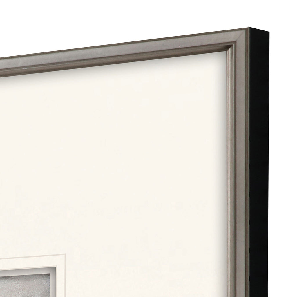 • Frame: Silver Wood Shadow Box Style With Dark Accents And Black Painted Side