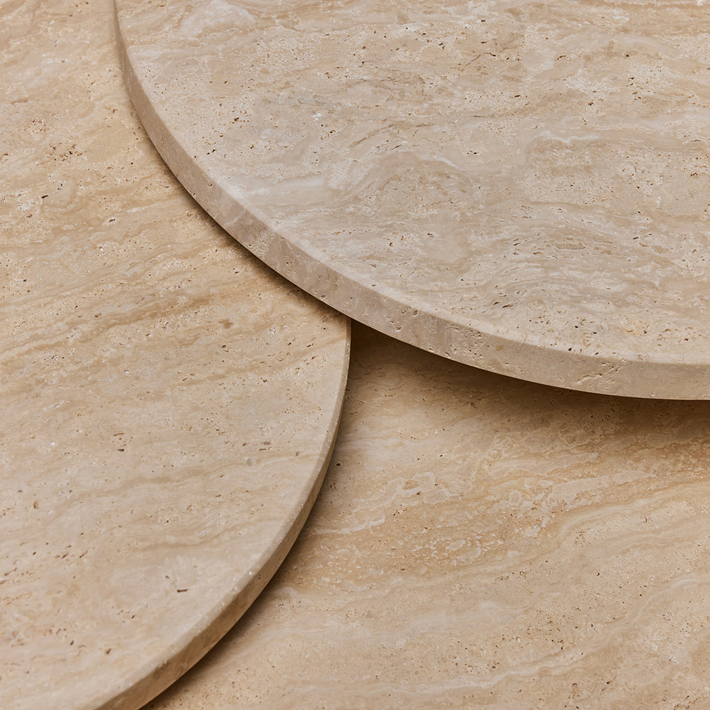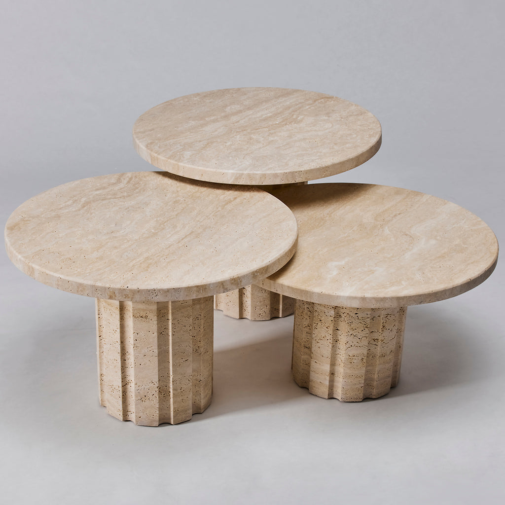 Proving that good things come in threes, the Amerigo Bunching Tables in raw travertine make for a stunning trio whether clustered together or displayed solo.Granite and marble are natural materials; variations in coloration, veining and texture are to be expected. Veins, smooth to the touch, are not defects, but rather natural imperfections that add to the uniqueness and charm of each piece.