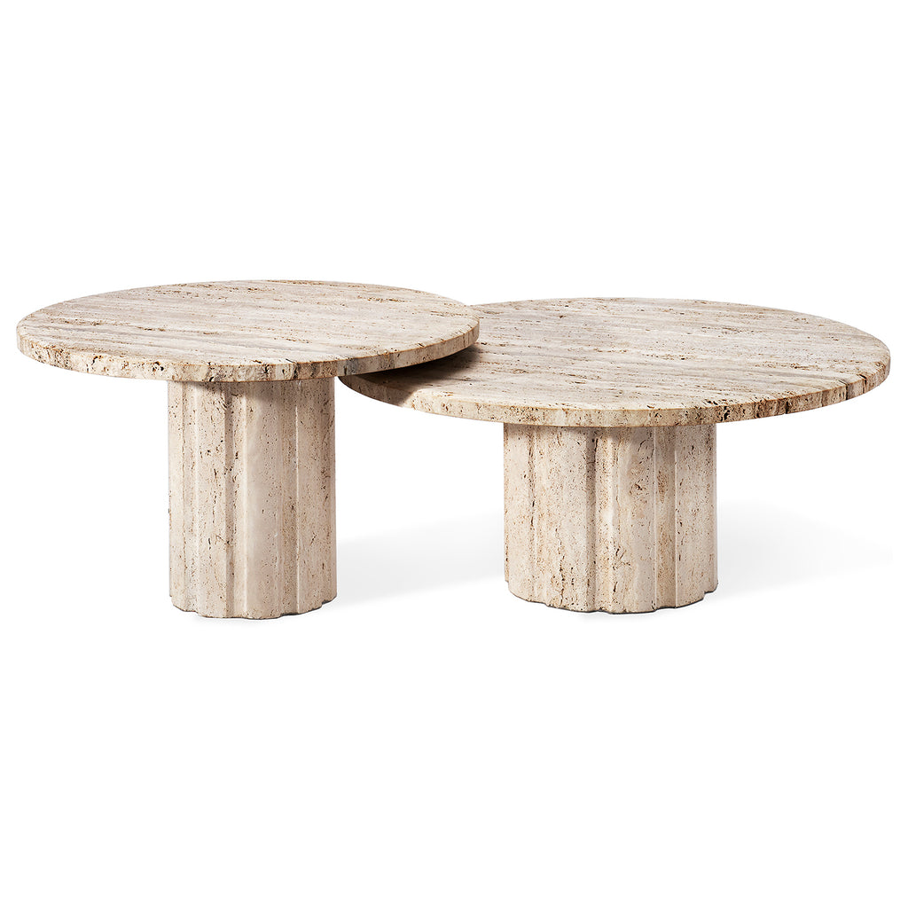 Travertine marble brings warmth and dimension to the Amerigo Cocktail Table Set, a functional and stylish duo that pair together beautifully but are just as gorgeous apart. Granite and marble are natural materials; variations in coloration, veining and texture are to be expected. Veins, smooth to the touch, are not defects, but rather natural imperfections that add to the uniqueness and charm of each piece.