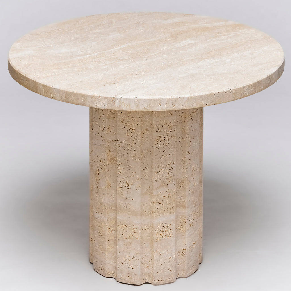 Raw travertine brings warmth and dimension to the Amerigo Side Table and its classical base.Granite and marble are natural materials; variations in coloration, veining and texture are to be expected. Veins, smooth to the touch, are not defects, but rather natural imperfections that add to the uniqueness and charm of each piece.