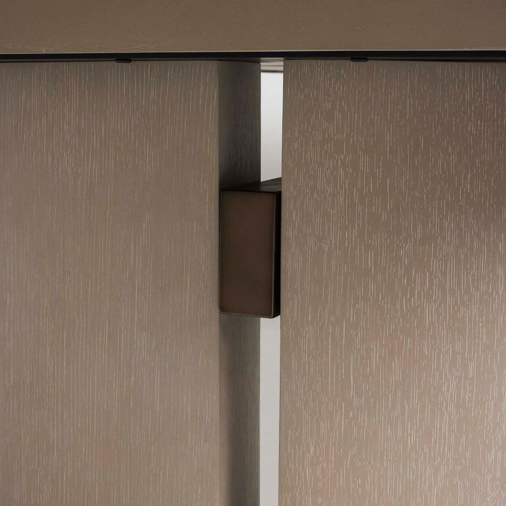 With a midcentury modern influence, the wood Boynton Self-Storing Extension Table boasts a cliffside oak finish and classic bronze metal accents.