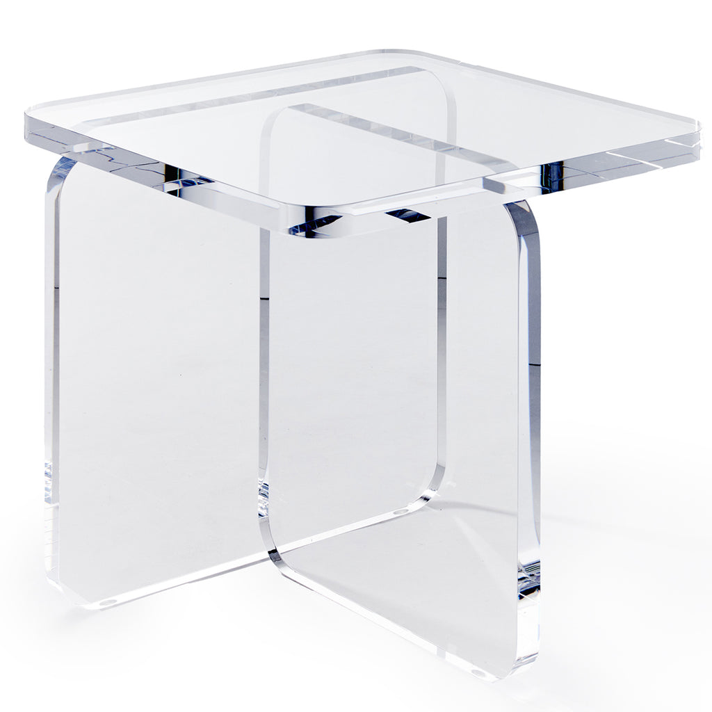 Taking the bedroom to next-level chic, the acrylic Eden Bedside Table is a stunner thanks to its statement-making silhouette.