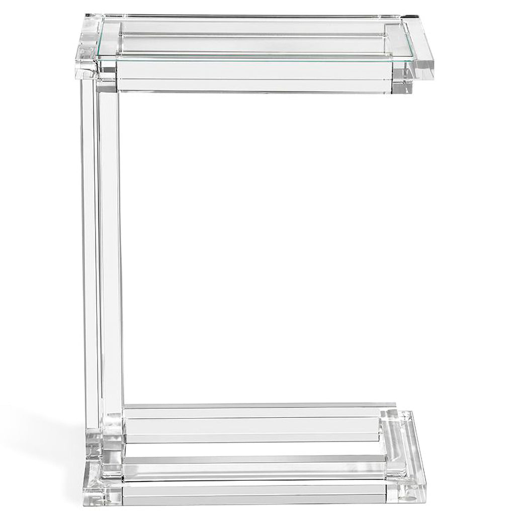 Clear acrylic and crystal glass transform the Elle Hugging Table into a versatile of-the-moment statement. Intricate channeling along the legs and apron elevate this classic silhouette.