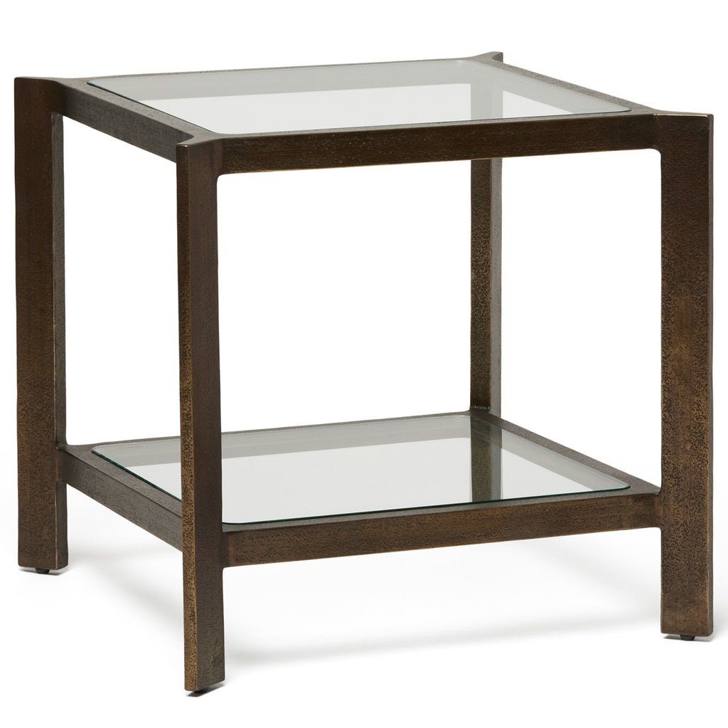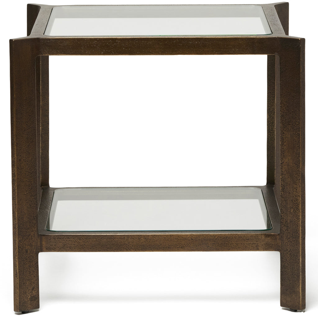 Thanks to its grand proportion and sculptural deep bronze frame, the metal and glass Linley Side Table makes a dramatic statement.