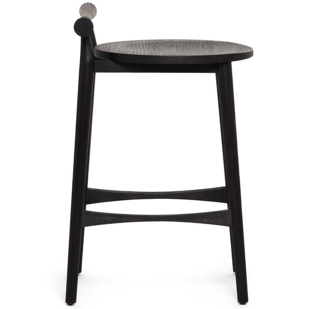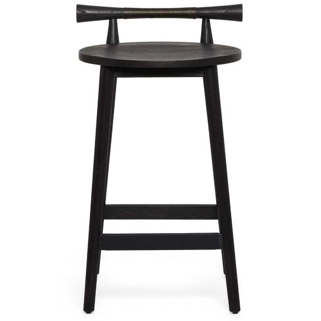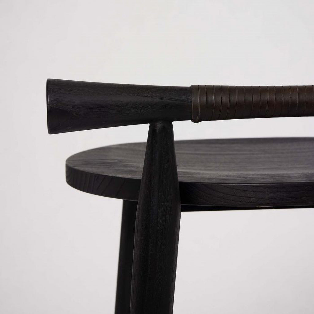 The Madeira Counter stool has a stunning global vibe thanks to an evocative silhouette realized in matte black sungkai wood with leather detailing.