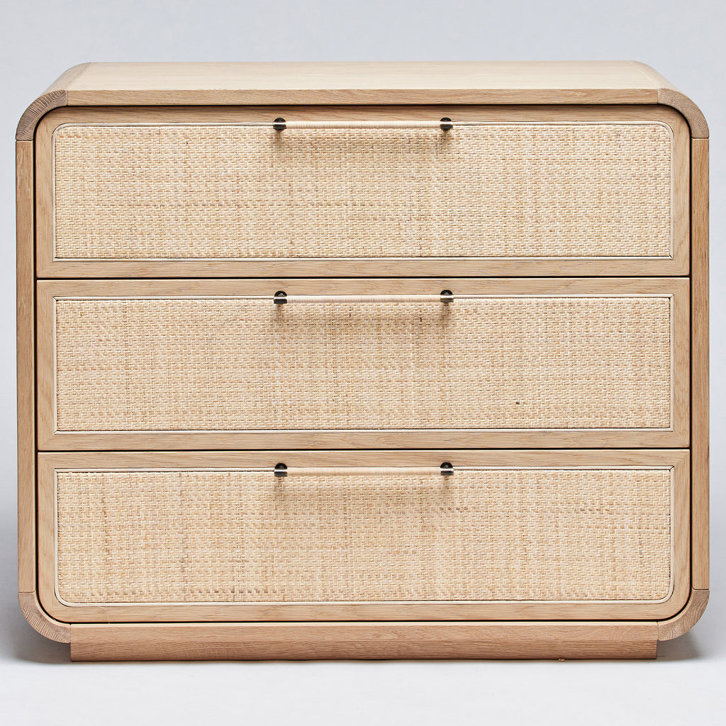 With the pairing of saddle-finished oak and blonde rattan, the Marsh 3 Drawer Chest and its midcentury vibes make for an easy breezy addition. This item is made of solid wood. Item will not be exactly as pictured, subtle deviations in hue after finishing can be expected as a result of natural variations in coloration of the base material.