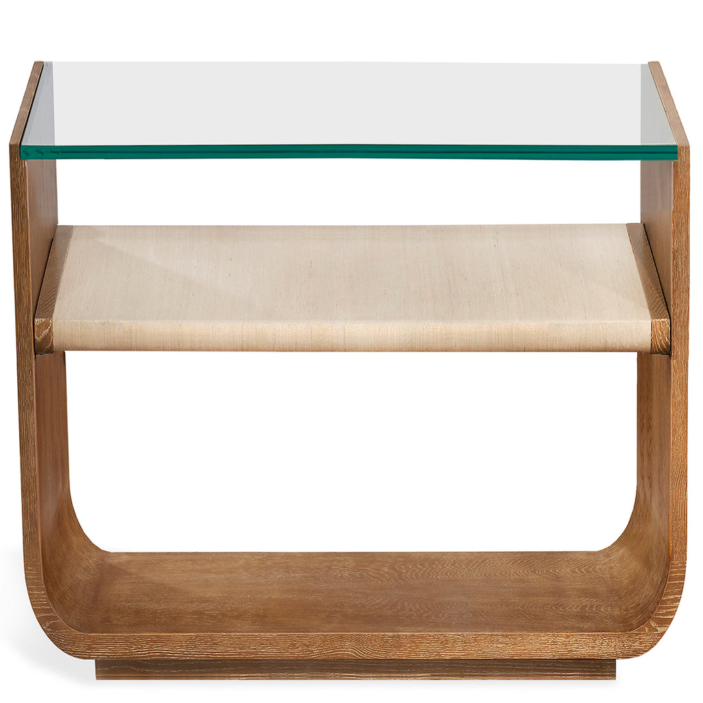 With a midcentury nod, the Mia Bedside Table boasts a fabulous mix of materials thanks to a combination of beach ceruse stained wood, natural cream sisal and glass. Wood is a natural material. Variations in coloration and pattern are to be expected and add to the uniqueness and charm of each piece.