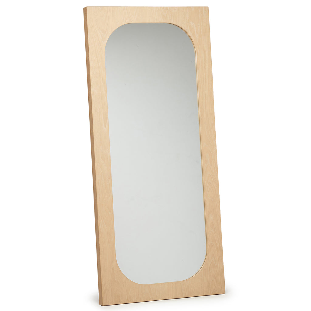 Rounded edges surrounded by a saddle hued oak frame transform the grand Mila Mirror into a stunning, reflective statement. This item is made of solid wood. Item will not be exactly as pictured, subtle deviations in hue after finishing can be expected as a result of natural variations in coloration of the base material.